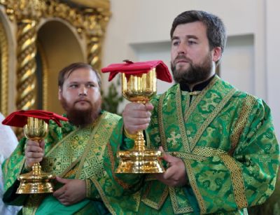 20 июня, в праздник Святой Троицы (Пятидесятницы), епископ Волжский и Сернурский Феофан совершил Божественную литургию в Никольском кафедральном соборе г. Волжска.