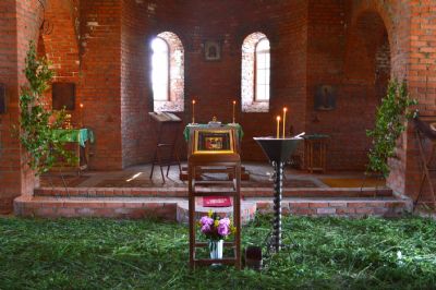 Приготовления к службе начались накануне: местные жители украсили храм свежескошенной травой, берёзками, ароматными цветами.