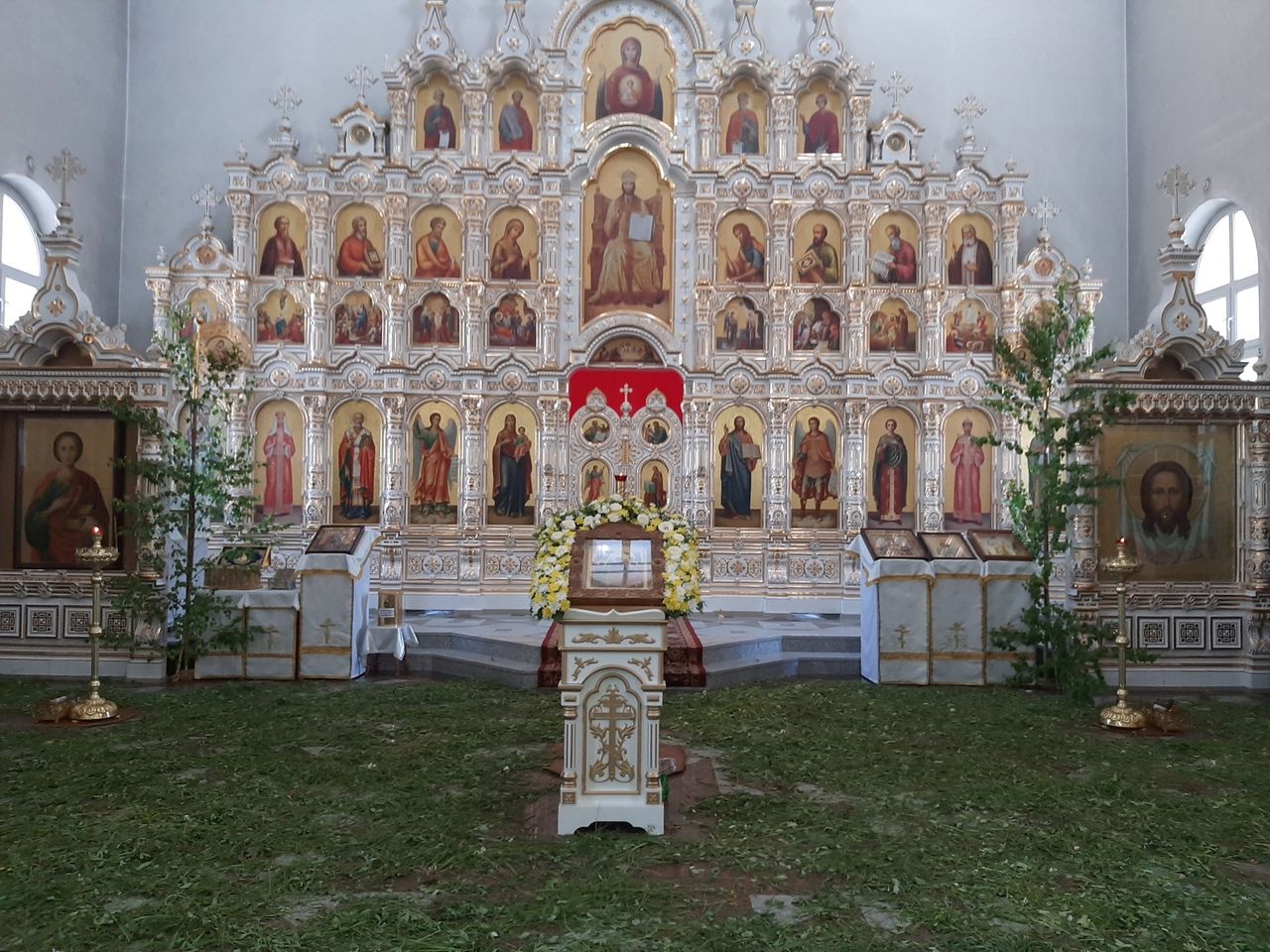 После молебна активисты Общества трезвости помогли работникам храма украсить Воскресенский собор к празднику Святой Троицы.