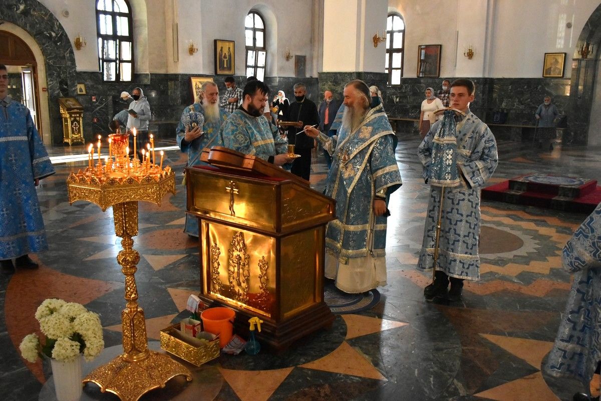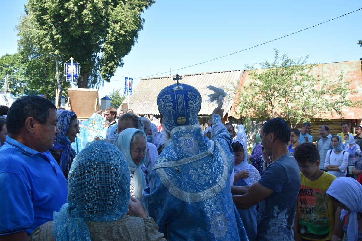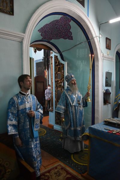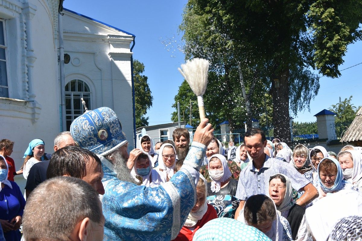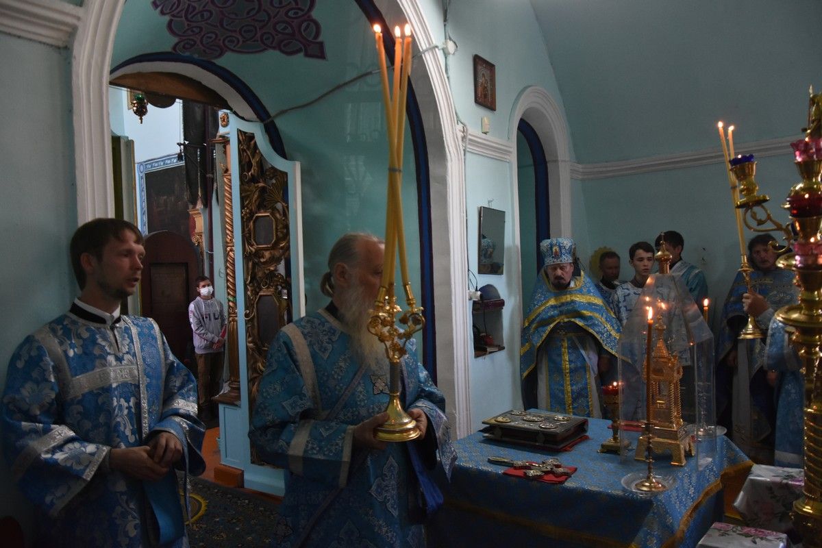 По традиции престольных праздников после Литургии был совершен молебен и крестный ход вокруг храма со чтением Евангелия и кроплением святой водой. Затем архипастырь обратился к собравшимся с проповедью, рассказав о заступничестве Пречистой Богородицы за Святую Русь, которую Она избрала Себе в удел.