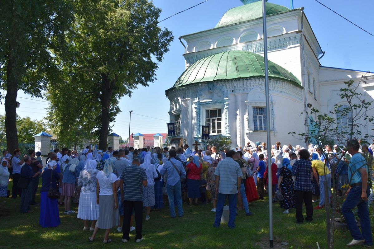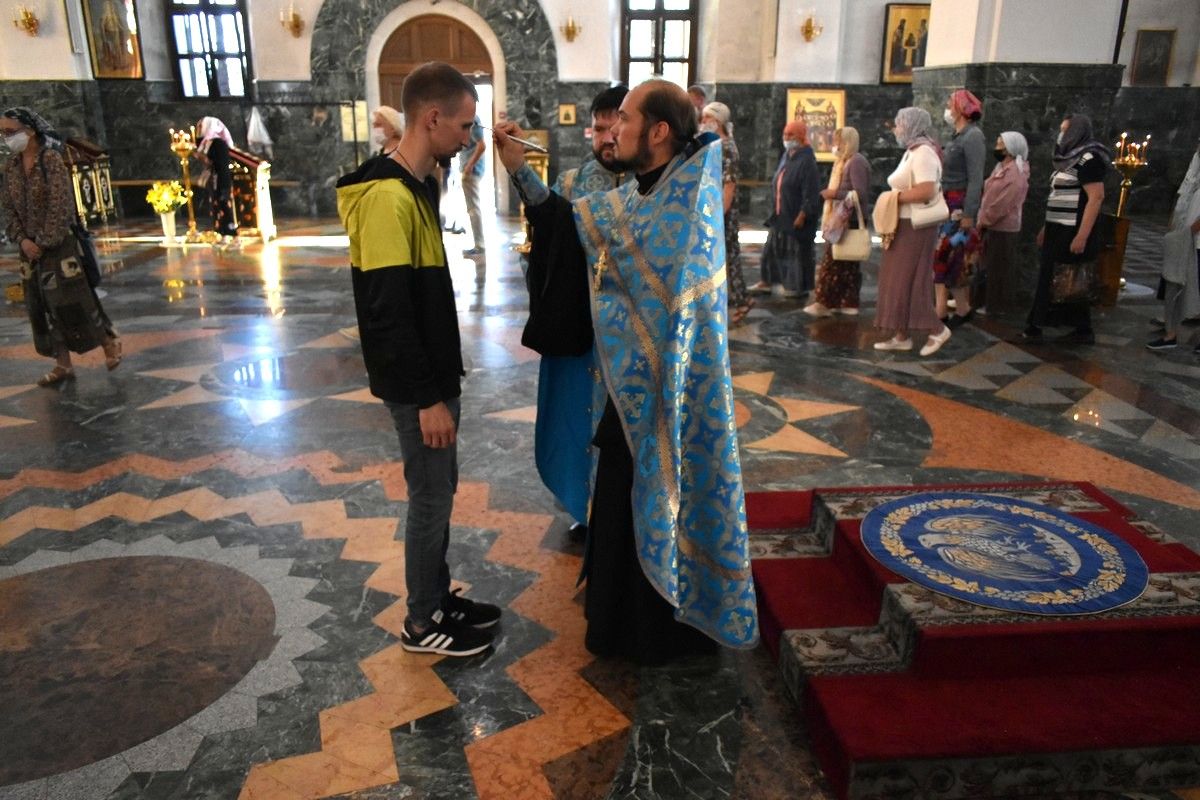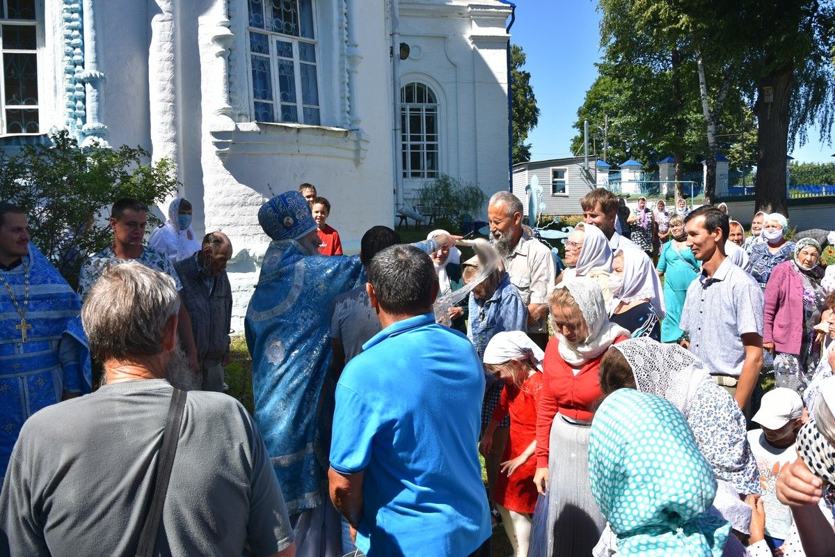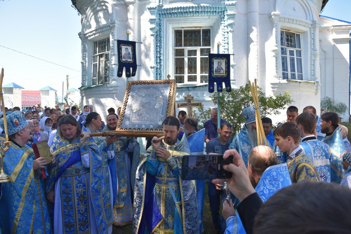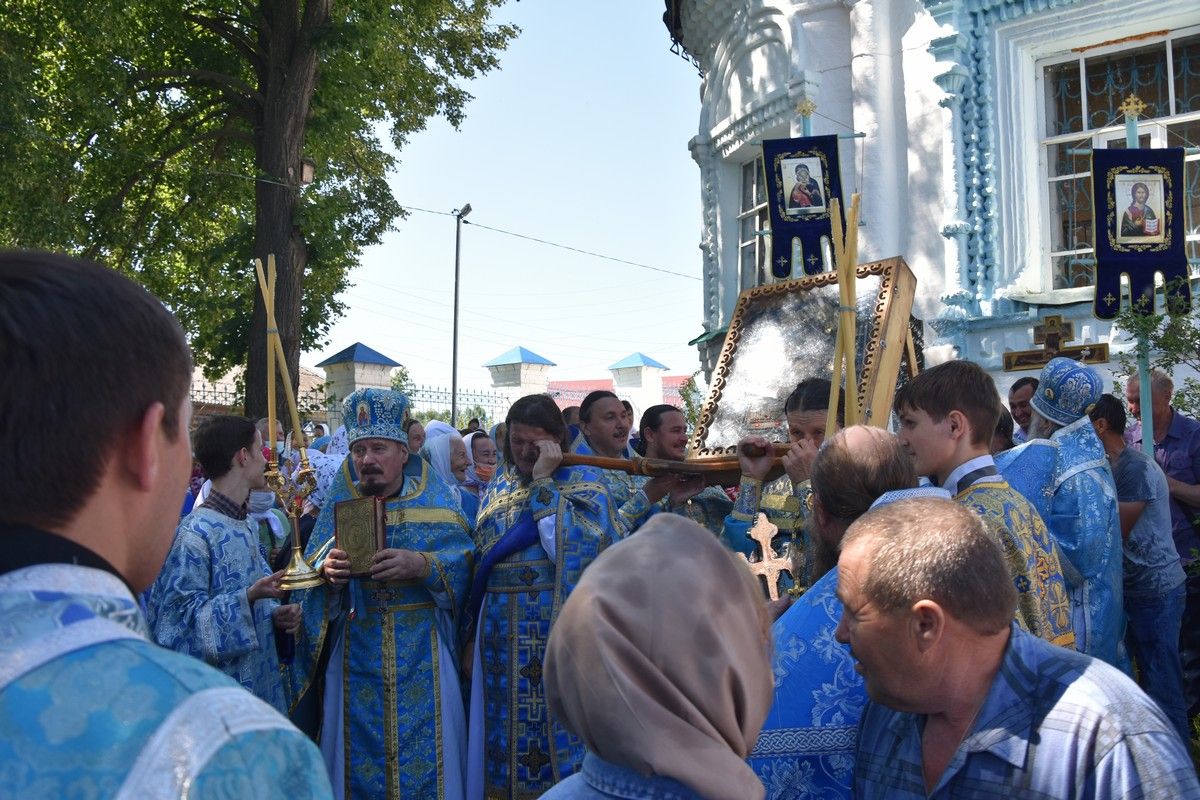 По традиции престольных праздников после Литургии был совершен молебен и крестный ход вокруг храма со чтением Евангелия и кроплением святой водой. Затем архипастырь обратился к собравшимся с проповедью, рассказав о заступничестве Пречистой Богородицы за Святую Русь, которую Она избрала Себе в удел.