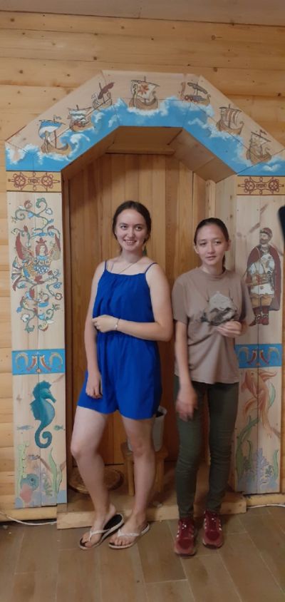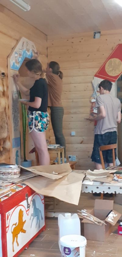 Руководство училища поддержало инициативу ребят – и на летнюю практику отправились 13 студентов во главе с преподавателем Надеждой Москвичевой. Заблаговременно они разработали эскизы, которые по прибытию на заставу утвердил отец Сергий. Батюшка разместил практикантов на проживание в воскресной школе, а также определил им фронт работ – роспись терема, в котором проходят встречи с интересными людьми, лекции и мастер-классы, здесь же находится трапезная.