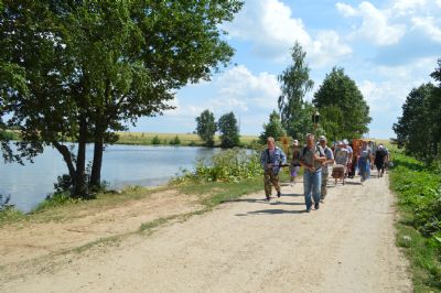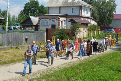 Ранним солнечным утром от строящегося храма в честь Спаса Нерукотворного участники крестного хода отправились в путь с иконами Нерукотворного Образа Спасителя, благоверных князя Петра и княгини Февронии, священномучеников Марийских и ковчежцем с мощами Пророка, Предтечи и Крестителя Господня Иоанна.