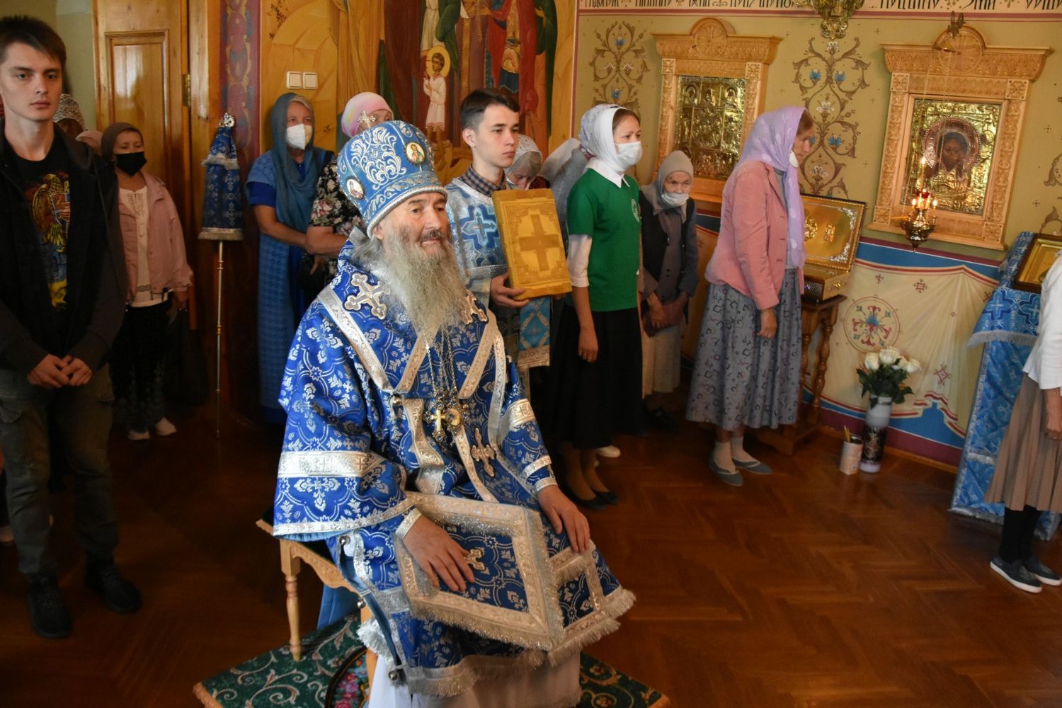 Вечером 25 июля митрополит Иоанн возглавил молебен с пением акафиста перед иконой Божией Матери «Троеручица» в сослужении клирика Благовещенского собора иерея Евгения Самойлова и протодиакона Михаила Козловского. Песнопения исполнял антифонно детско-юношеский хор «Благовест» под руководством регентов Ольги Акилбаевой и Татьяны Черновой. Акафист вместе со священством и хором пели все прихожане.