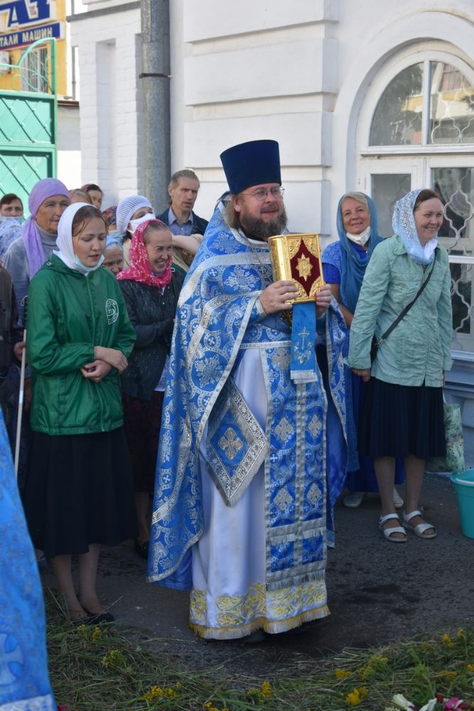 После Литургии по традиции престольных праздников прошел крестный ход вокруг храма с чтением Евангелия и кроплением святой водой. Также была вознесена молитва перед иконой Пресвятой Богородицы «Троеручица».