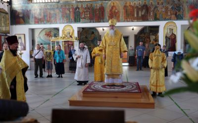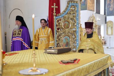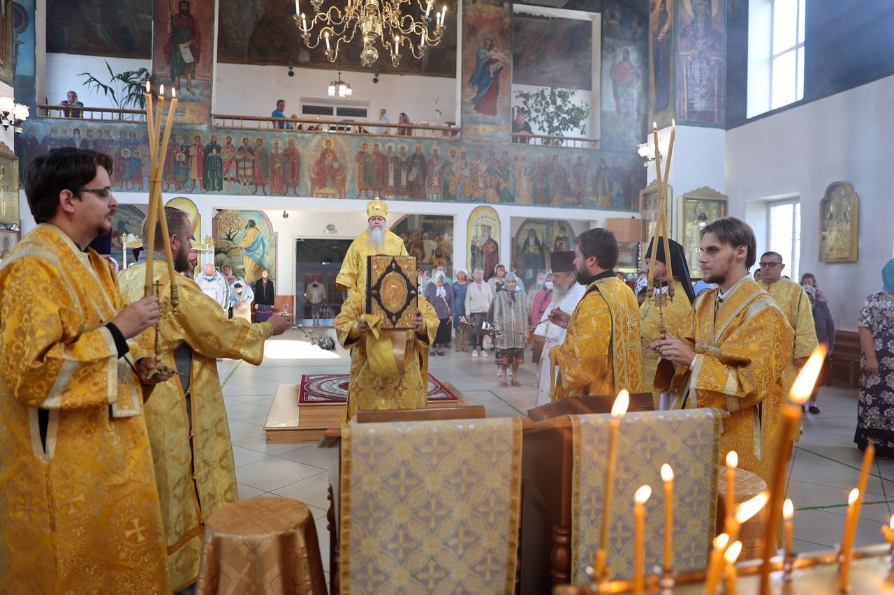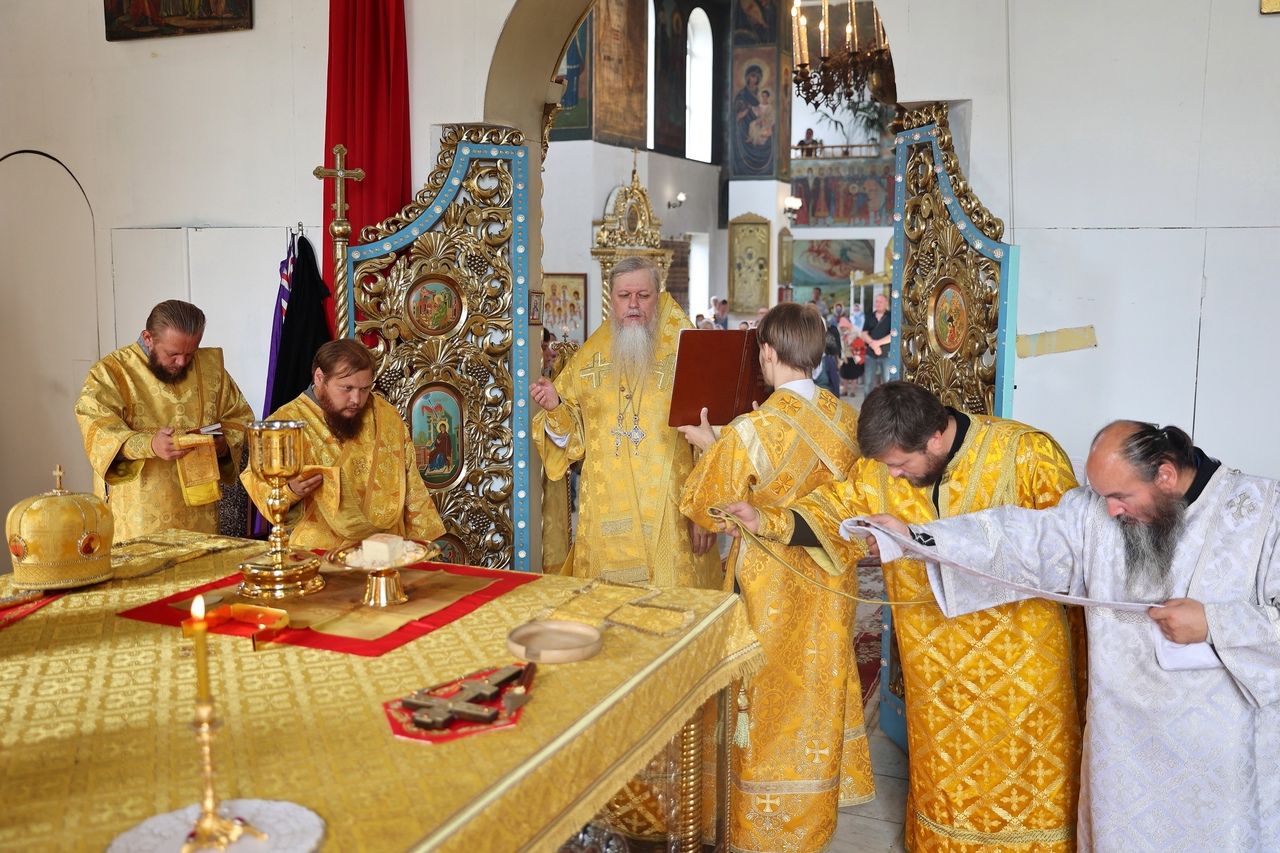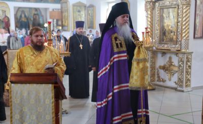 Его Преосвященству сослужили клирики собора, песнопения исполнял архиерейский хор.