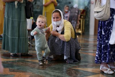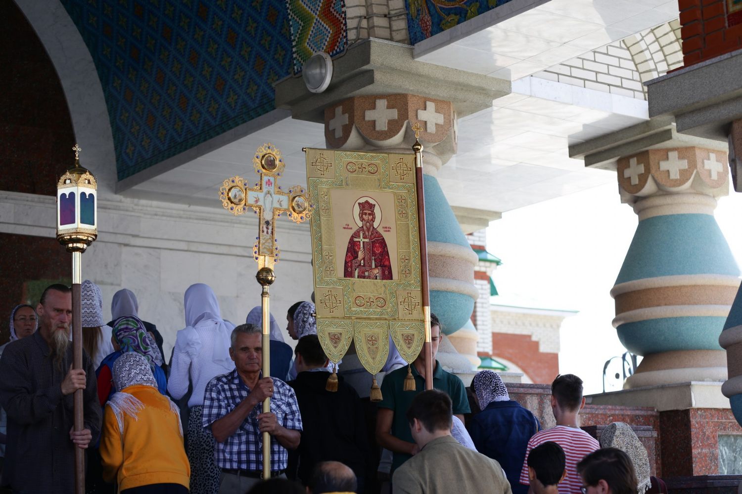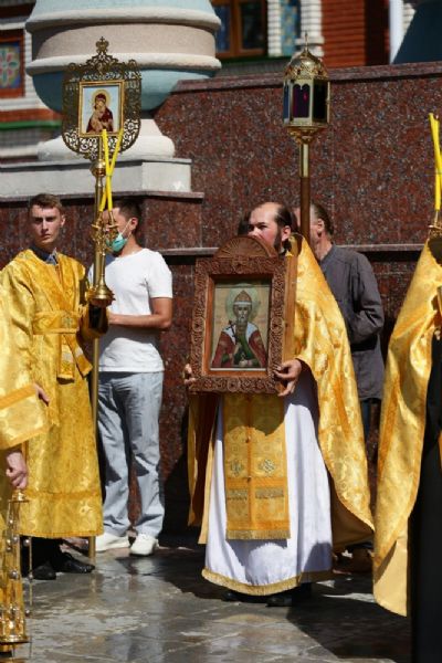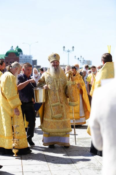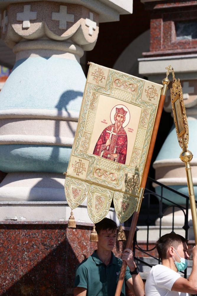 После Литургии прошел крестный ход вокруг храма со чтением Евангелия и кроплением святой водой. Затем в соборе был отслужен особый молебен на день крещения Руси.