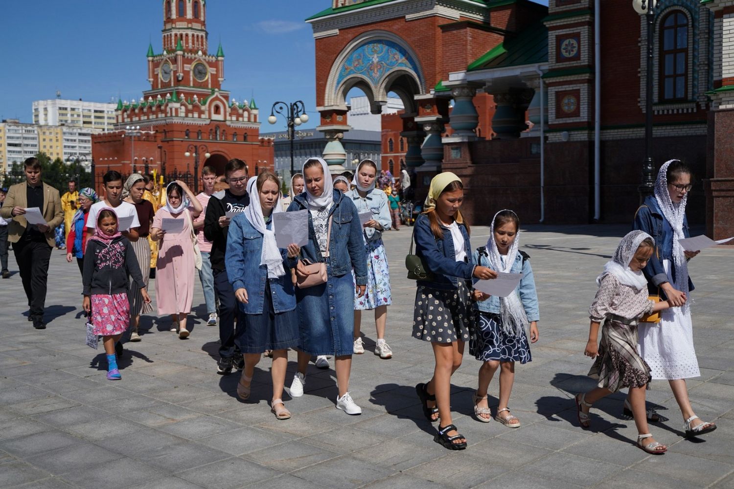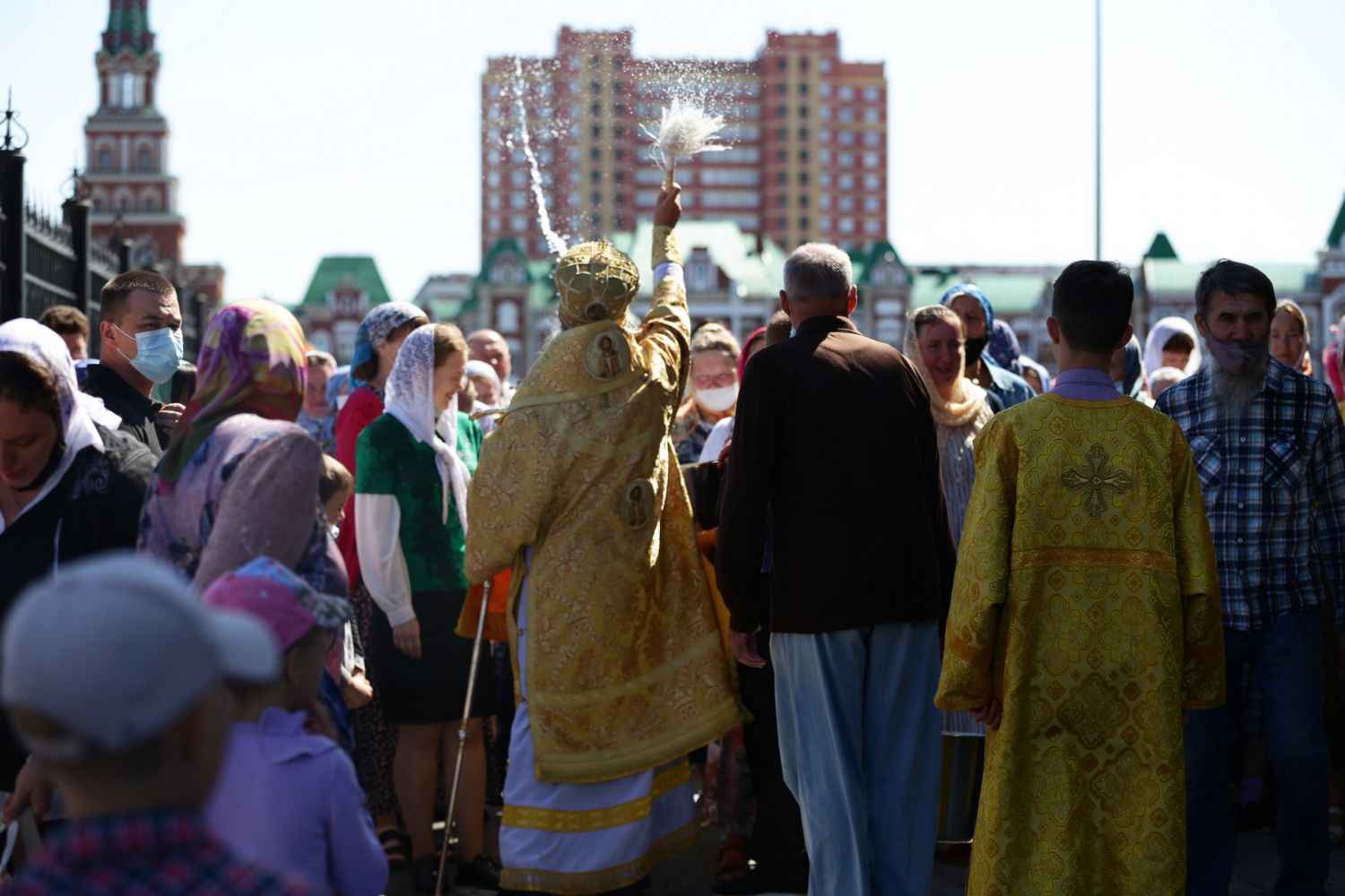 Не только на Святой Руси, но и на нашей Марийской земле было воздвигнуто множество храмов, монастырей, множество людей прославляли Бога и Его Пречистую Матерь. Исторически событие Крещения Руси произошло в первый день августа, на Медовый Спас. И в этот день на берегу Малой Кокшаги собиралось более десяти тысяч человек, все были в светлых одеждах. Священство из Воскресенского собора и других храмов шли на Кокшагу, здесь совершался молебен, освящалась вода, освящался и мед. Прообраз того, почему установлено освящение меда, – вера Христова, как мед сладкий. Она просвещает, врачует и насыщает всякого человека, живущего с Богом, дает силы и крепость с помощью Божией, по молитвам Его Пречистой Матери и всех святых, наших с вами сродников.