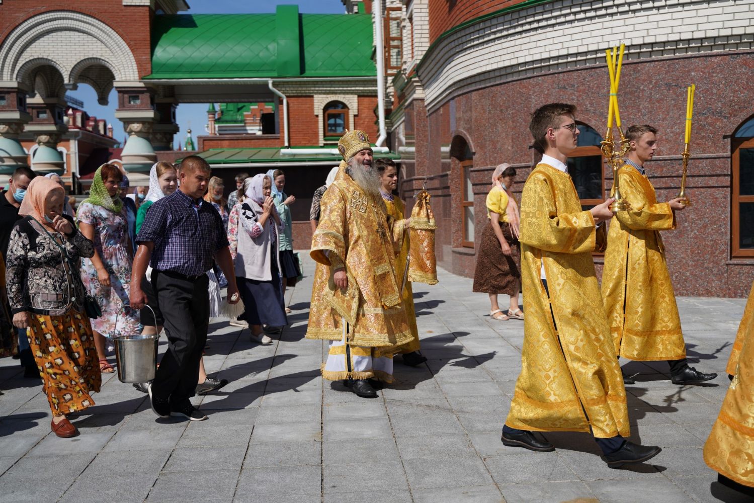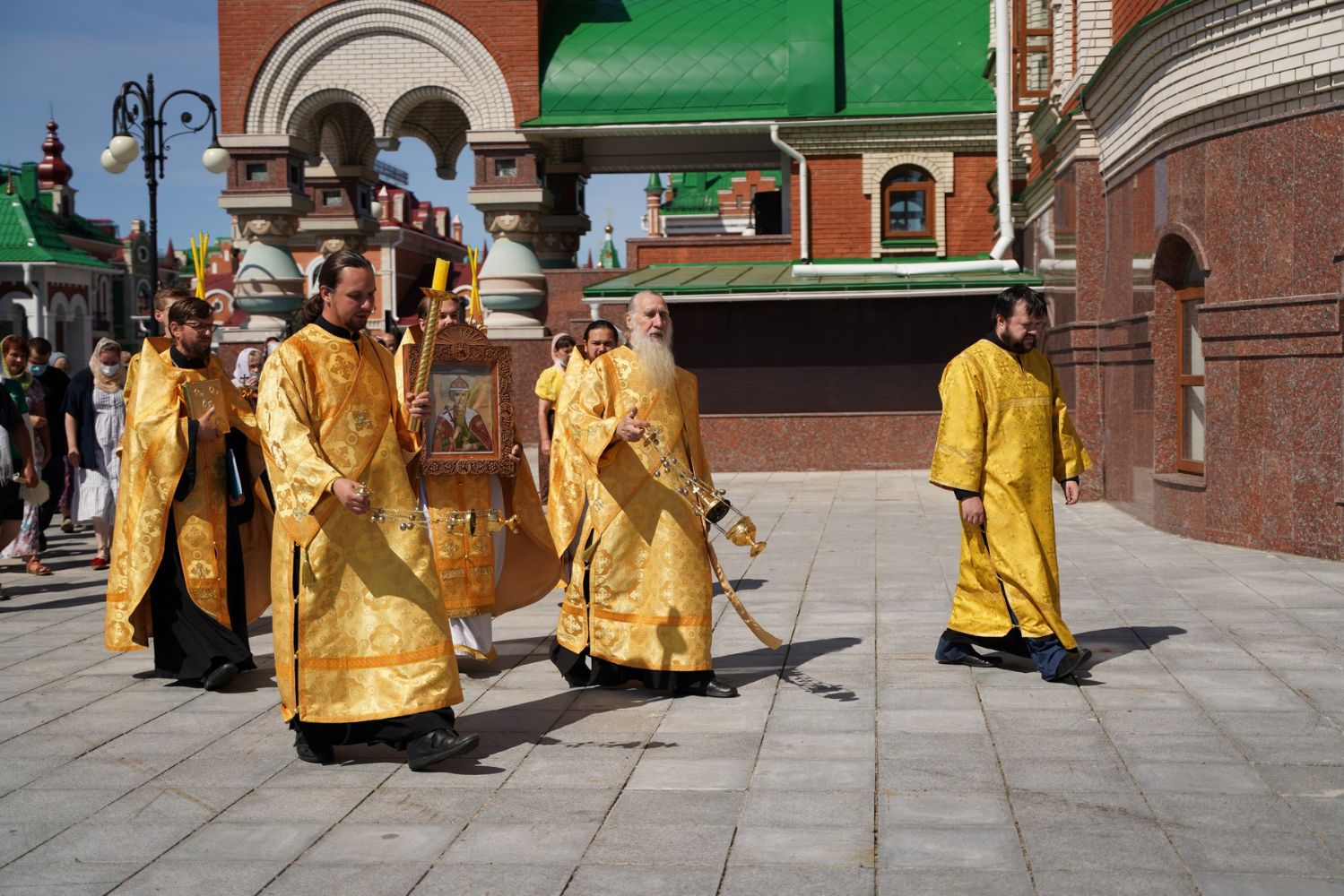 Архипастырю сослужили секретарь Йошкар-Олинского епархиального управления иеромонах Серафим (Пасанаев), клирики кафедрального собора и протодиакон Михаил Козловский. Песнопения исполнял детско-юношеский хор «Благовест» под руководством регента Татьяны Черновой.