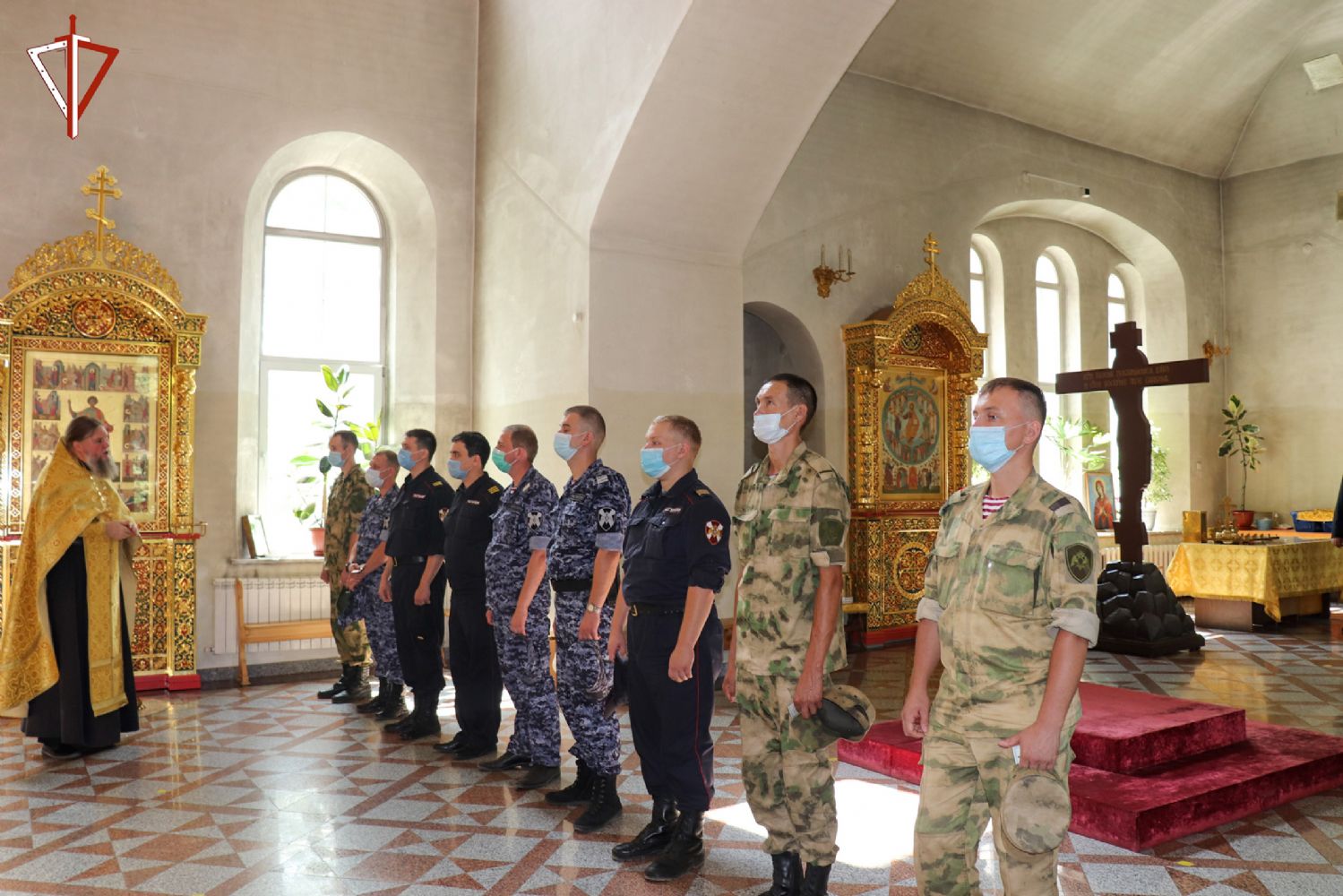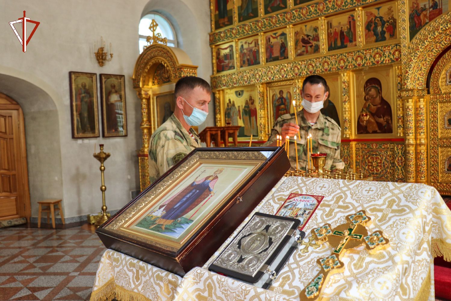 Представителей Росгвардии встретил настоятель храма протоиерей Александр Бачурин. Отец Александр совершил молебное пение, поздравил росгвардейцев с праздником и обратился к ним со словами наставления: