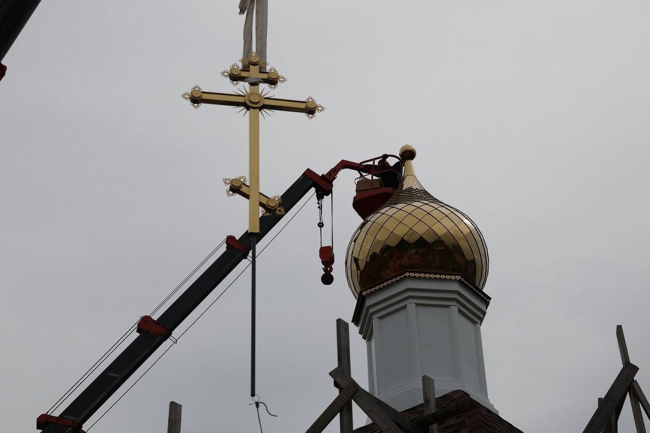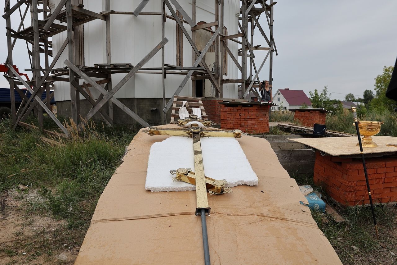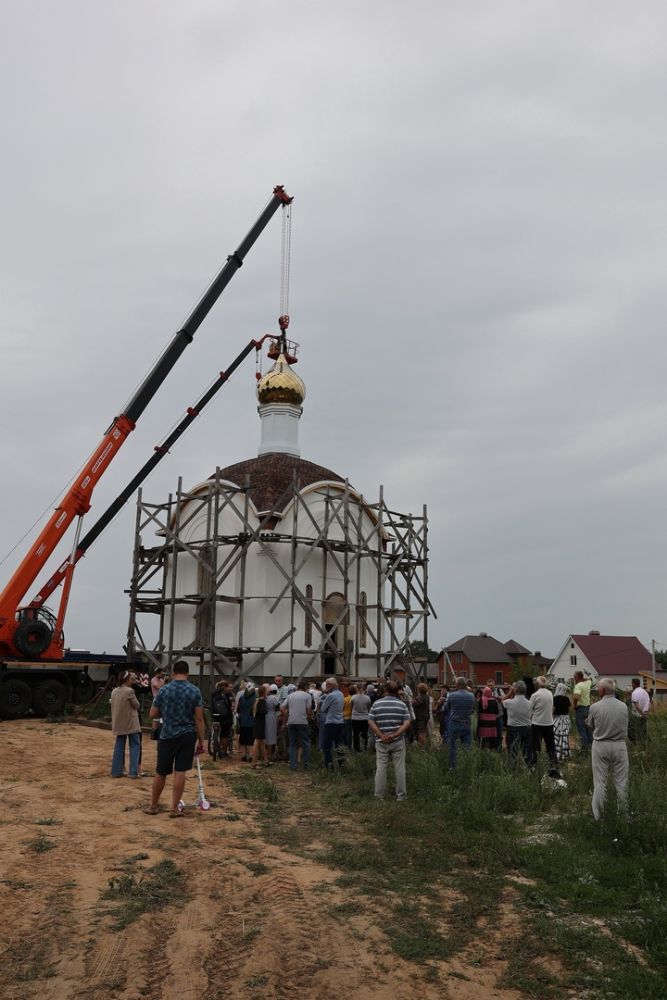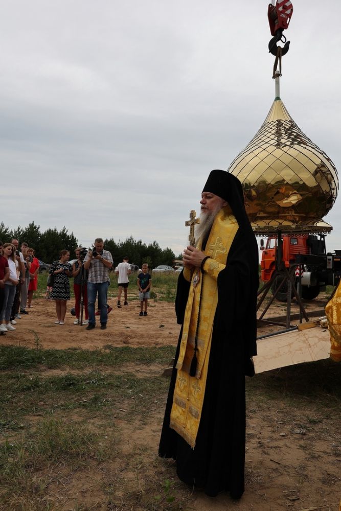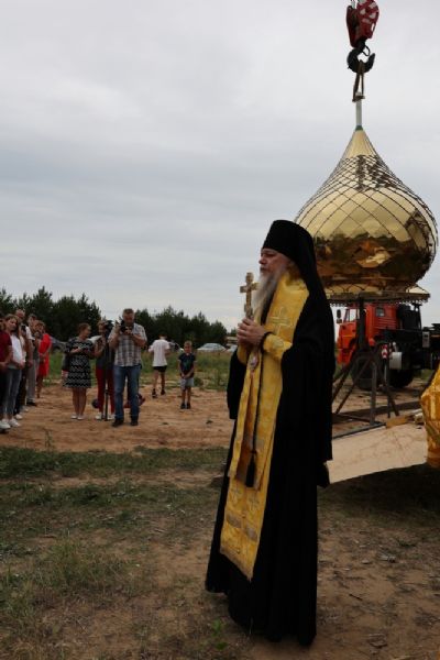 По окончании чина освящения купол и крест были подняты на главку строящейся часовни.