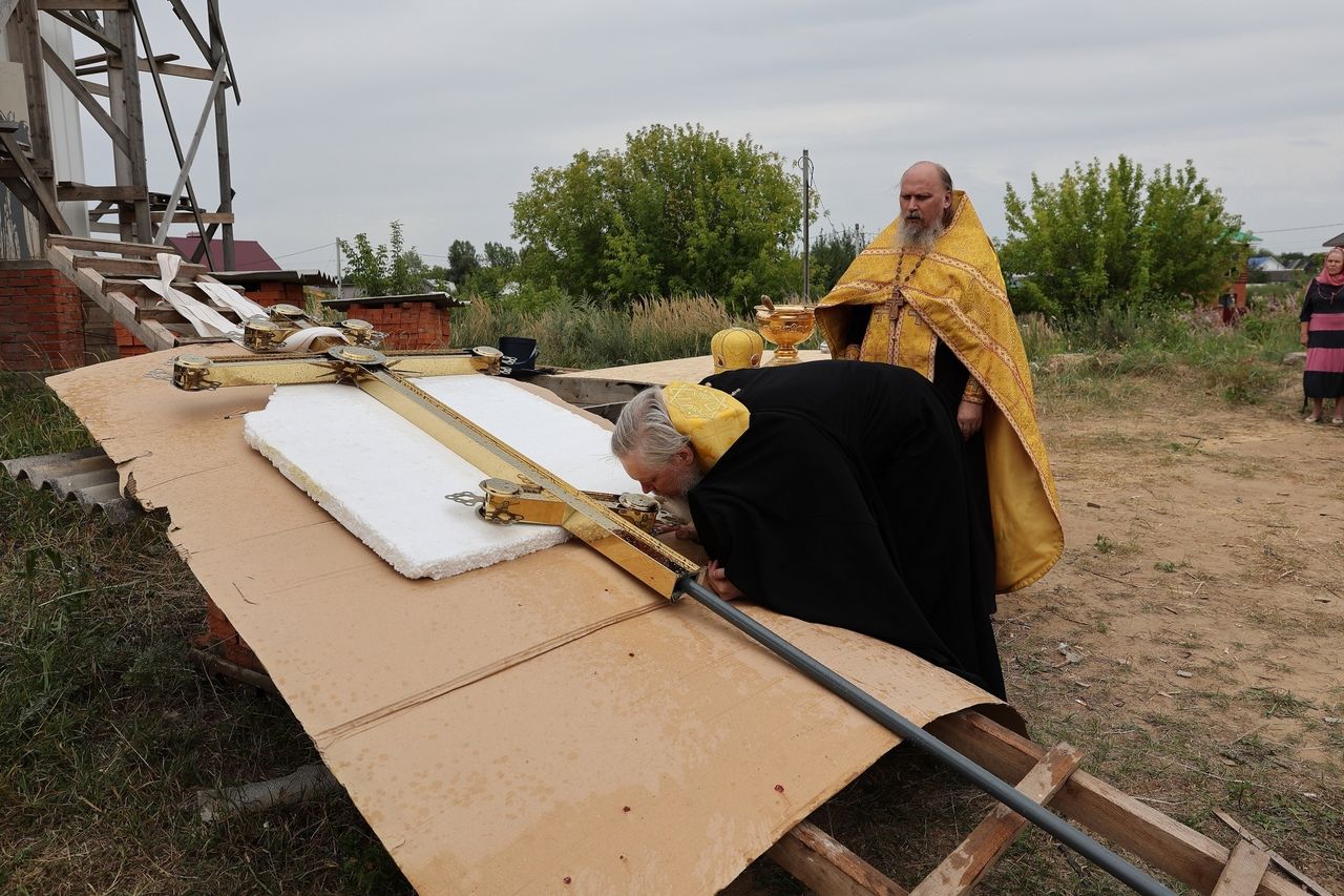 29 июля епископ Волжский и Сернурский Феофан совершил чин освящения креста и купола для строящейся часовни в микрорайоне «Русская Луговая» г. Волжска.