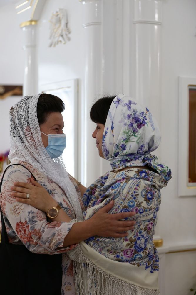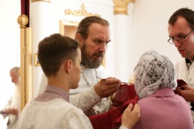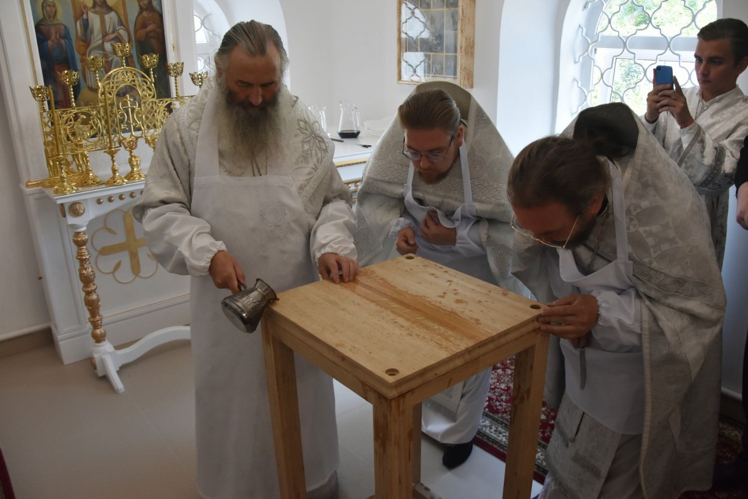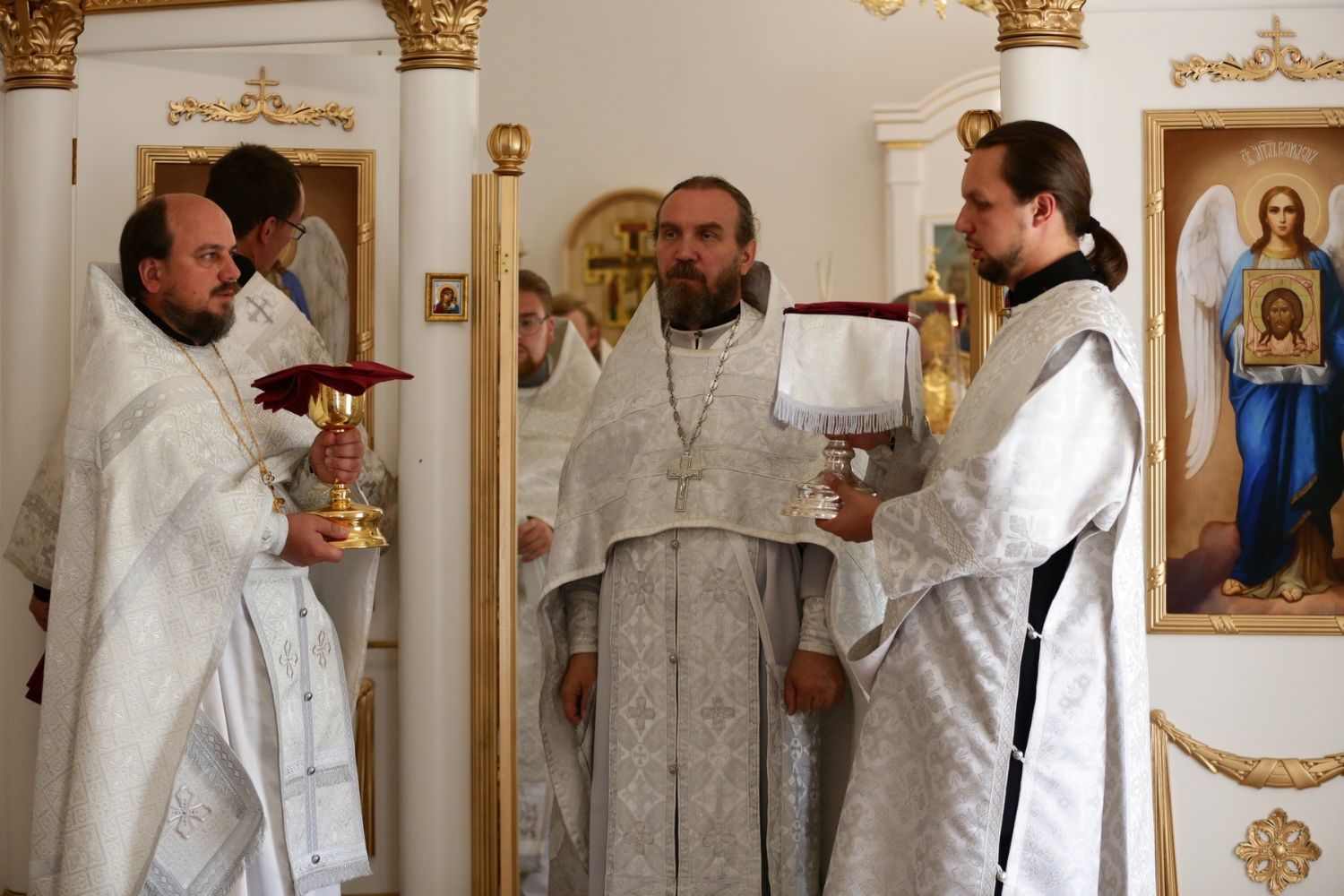 По окончании чина освящения в Казанском приделе была совершена первая Божественная литургия. Многие верующие причастились святых Христовых Таин в залог вечного пребывания с Господом.