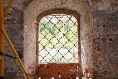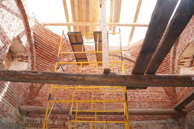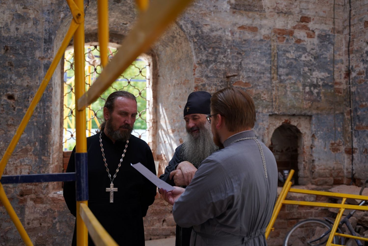 В завершение митрополит Иоанн осмотрел центральный придел храма, где сейчас идут восстановительные работы.