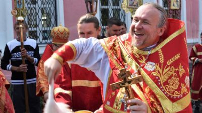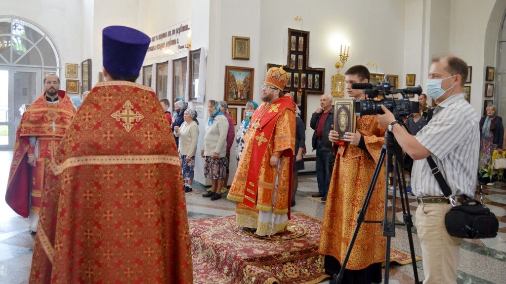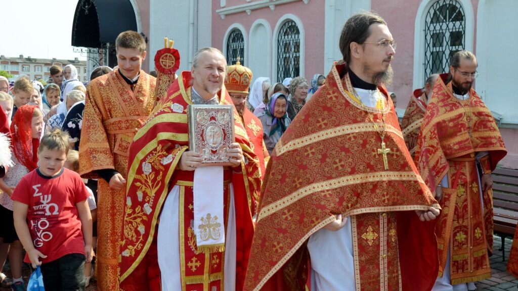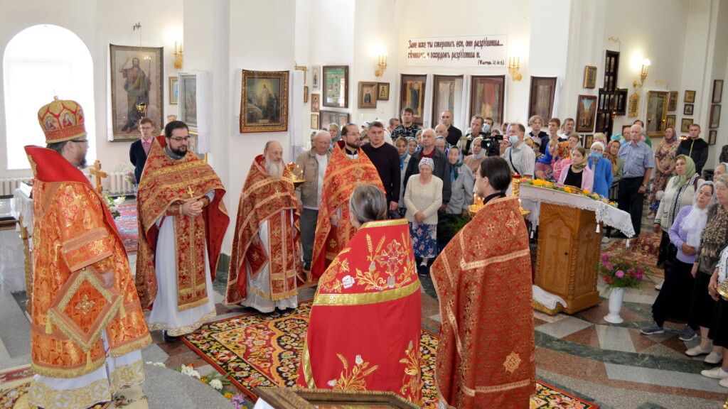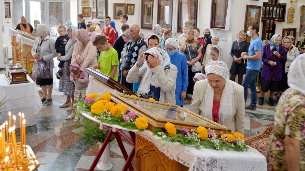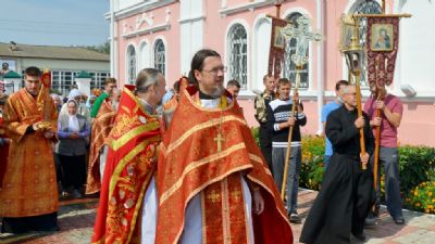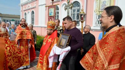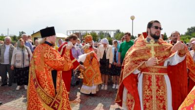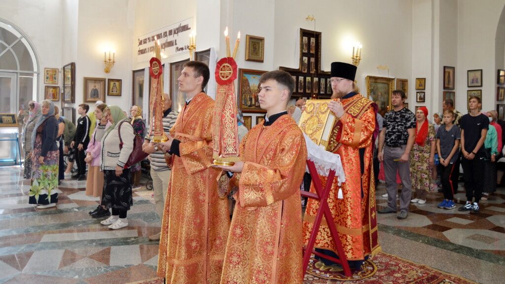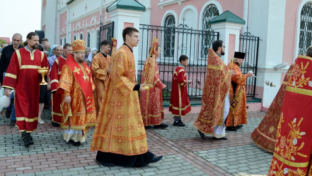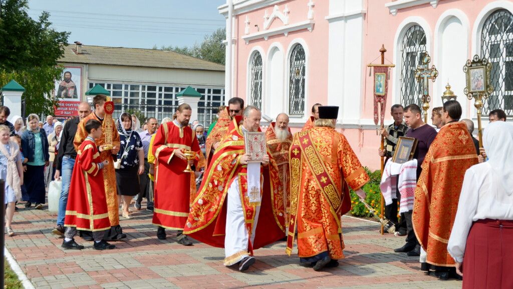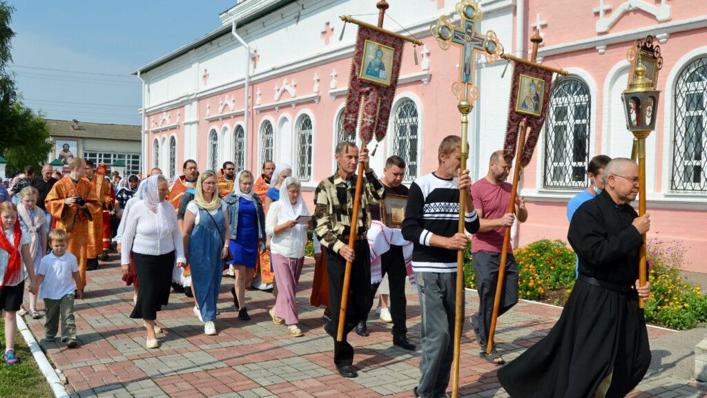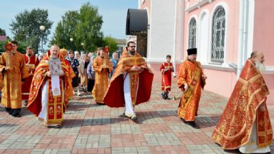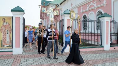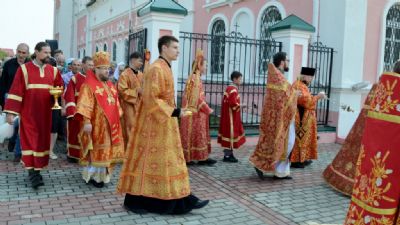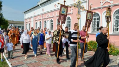 В конце богослужения священнослужители, прихожане и паломники прошли вокруг храма крестным ходом.