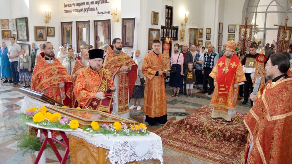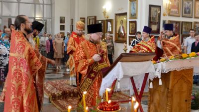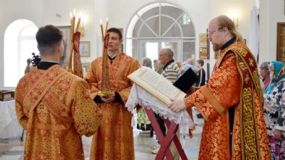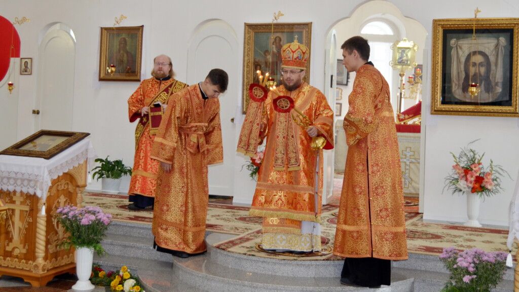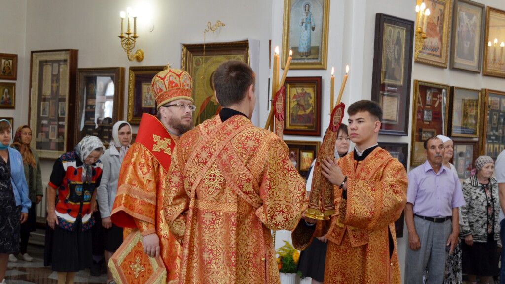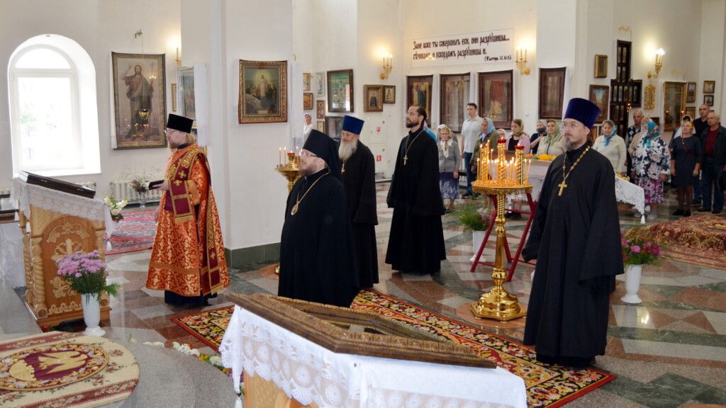 Возглавить праздничное богослужение епископа Паисия пригласил настоятель храма протоиерей Димитрий Вылекжанин по благословению митрополита Йошкар-Олинского и Марийского Иоанна. Его Преосвященству сослужили иеромонах Давид (Сивер) из Троицкого Собора г. Яранска, настоятель храма Рождества Иоанна Предтечи протоиерей Димитрий Вылекжанин, настоятель храма Покрова Пресвятой Богородицы села Упша протоиерей Михаил Нехорошков, настроятель храма Державной иконы Божией Матери п. Медведево протоиерей Алексий Михайлов, настоятель храма Рождества Христова с. Арда Килемарского района иерей Григорий Михалев и клирик Воскресенского собора г. Йошкар-Олы иерей Леонид Вылекжанин.