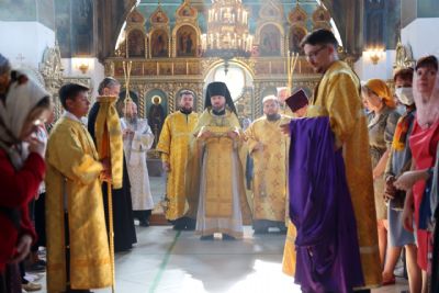 Его Преосвященству сослужило духовенство собора, песнопения исполнял архиерейский хор.