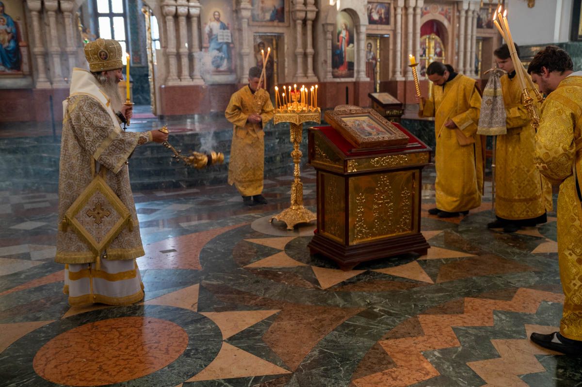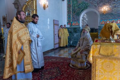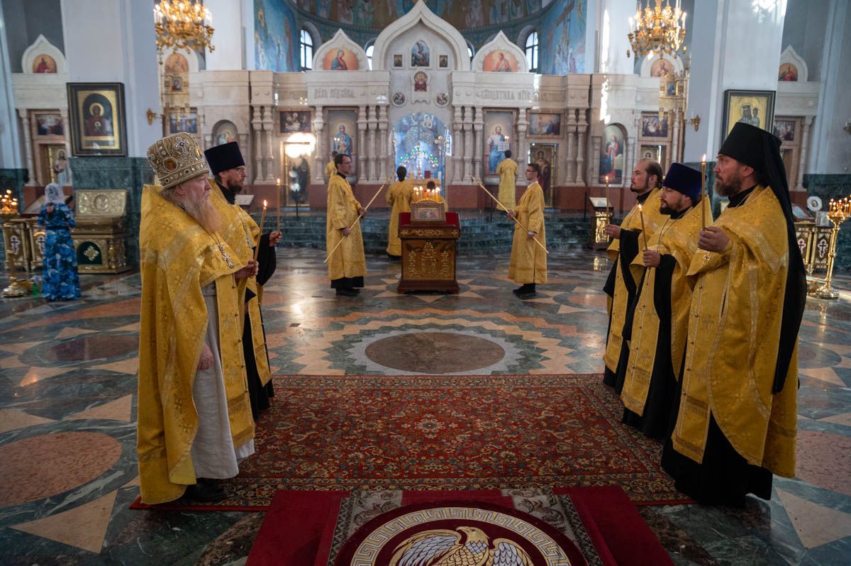 14 августа вечером митрополит Йошкар-Олинский и Марийский Иоанн возглавил всенощное бдение в Благовещенском кафедральном соборе г. Йошкар-Олы.