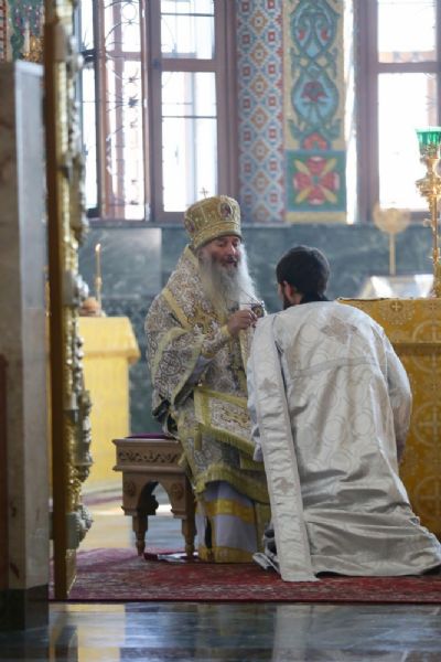 После Великого входа митрополит Иоанн рукоположил диакона Иоанна Милютина в сан священника. Сорокоуст новорукоположенный священник будет проходить в Благовещенском кафедральном соборе.
