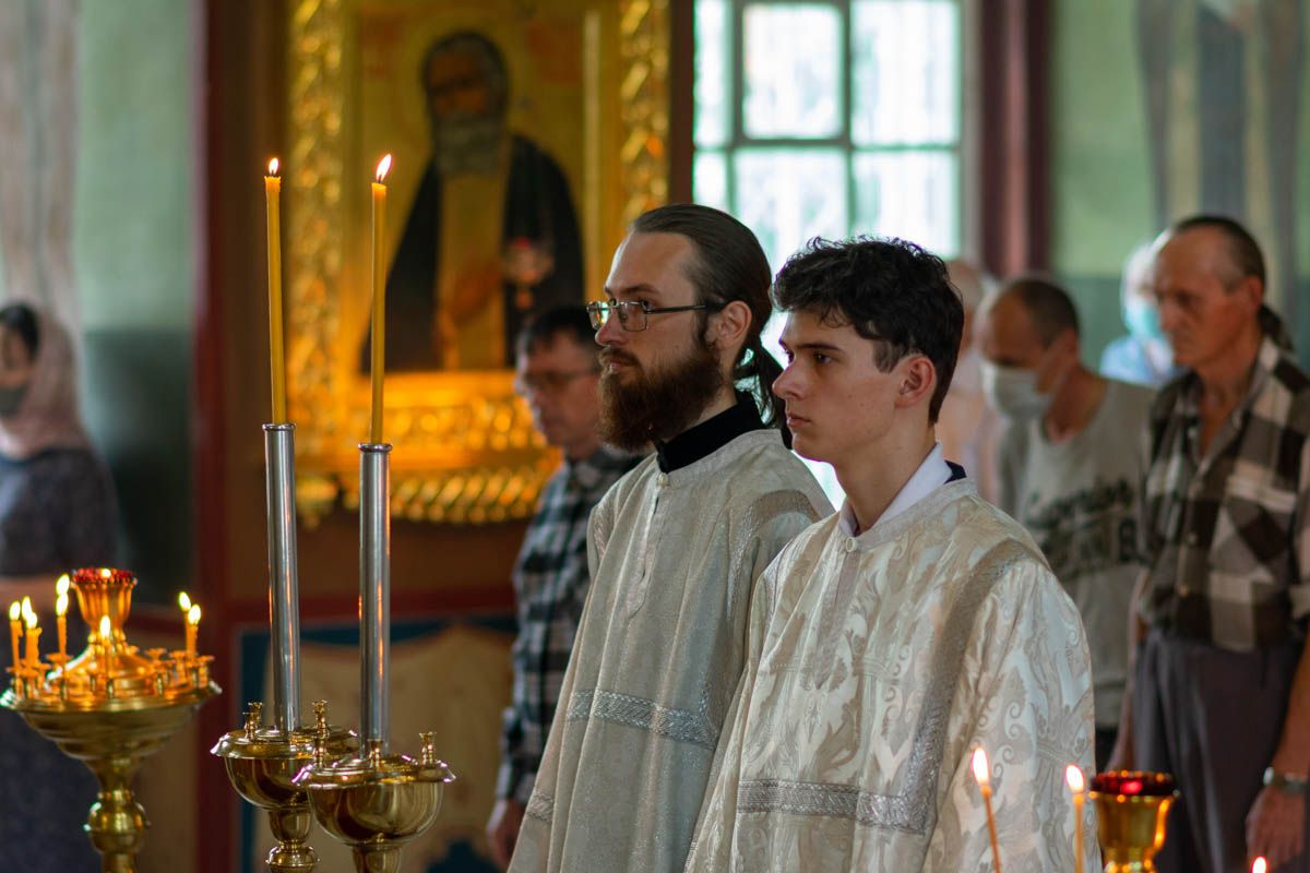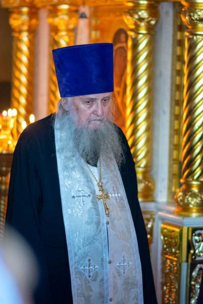 Владыке сослужили секретарь Йошкар-Олинского епархиального управления иеромонах Серафим (Пасанаев), настоятель собора протоиерей Евгений Кутырев, клирики собора протоиерей Георгий Втюрин, иереи Александр Козлов и Олег Большаков, а также протодиакон Михаил Козловский. Песнопения исполнял хор собора.