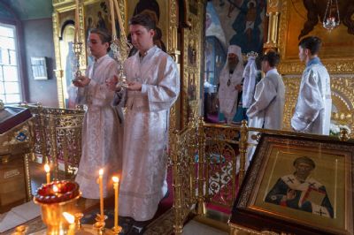 Его Высокопреосвященству сослужили секретарь Йошкар-Олинского епархиального управления иеромонах Серафим (Пасанаев), клирики храма иереи Сергий Асланов, Павел Дурандин и протодиакон Михаил Козловский.
