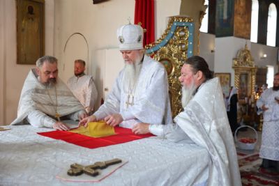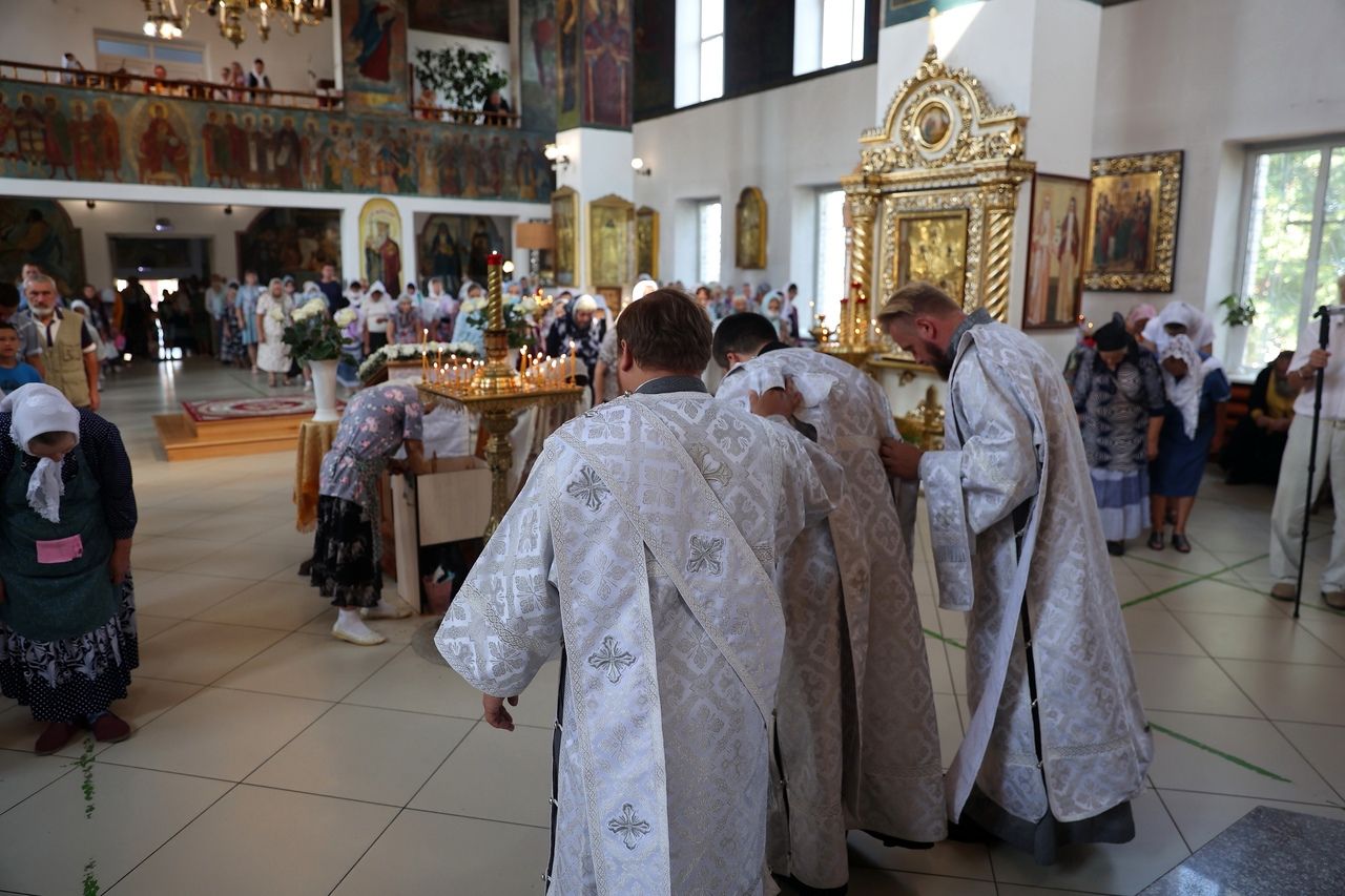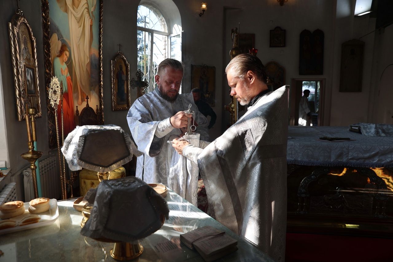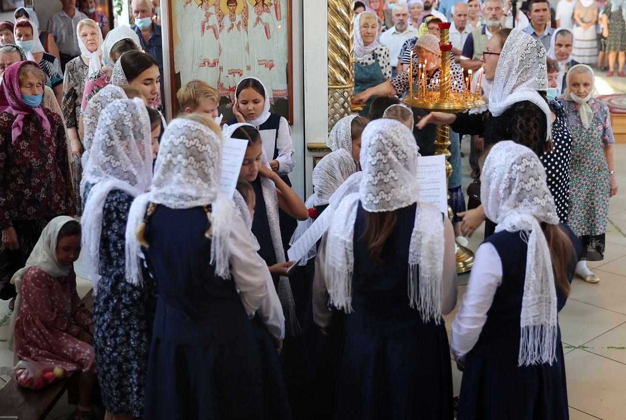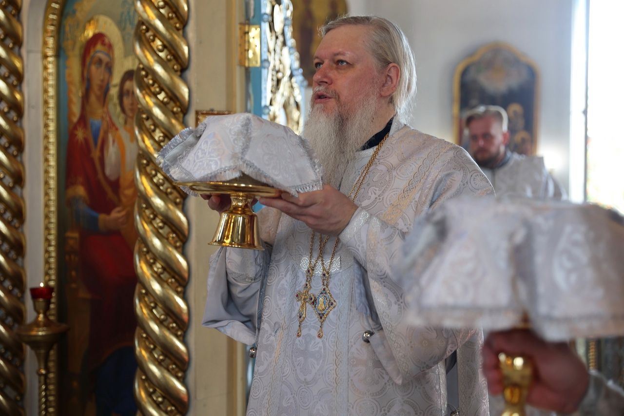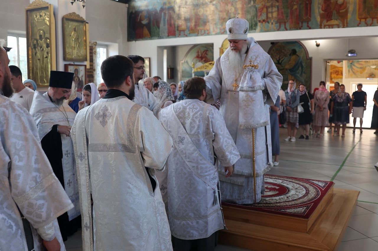 Его Высокопреосвященству сослужило духовенство собора, песнопения исполняли два хора: архиерейский и детско-юношеский.