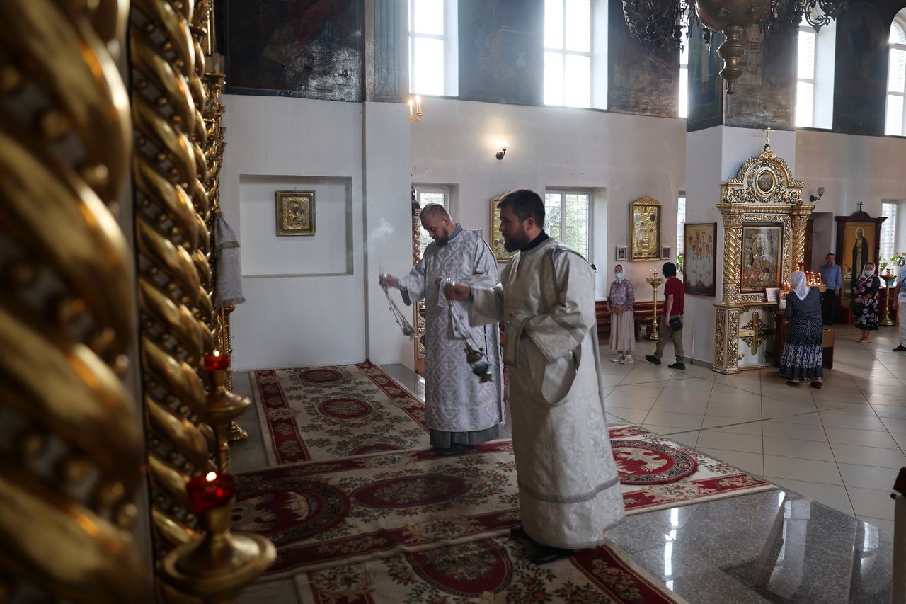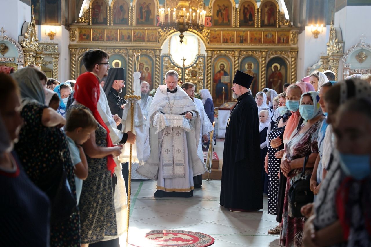 19 августа, в праздник Преображения Господа Бога и Спаса нашего Иисуса Христа, епископ Волжский и Сернурский Феофан совершил Божественную литургию в Никольском кафедральном соборе г. Волжска. Накануне вечером владыка возглавил здесь же всенощное бдение.