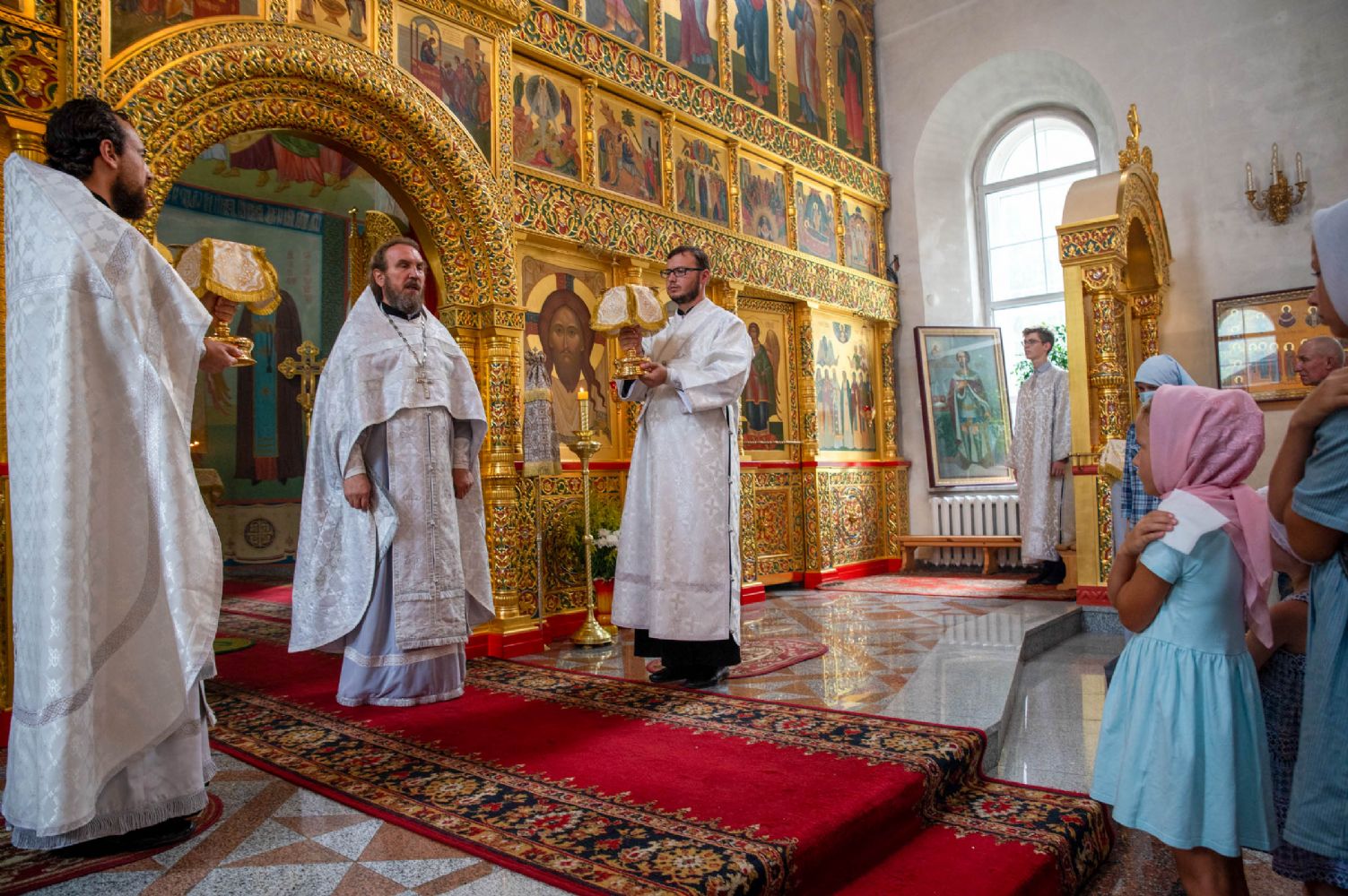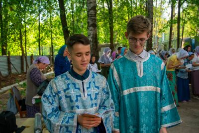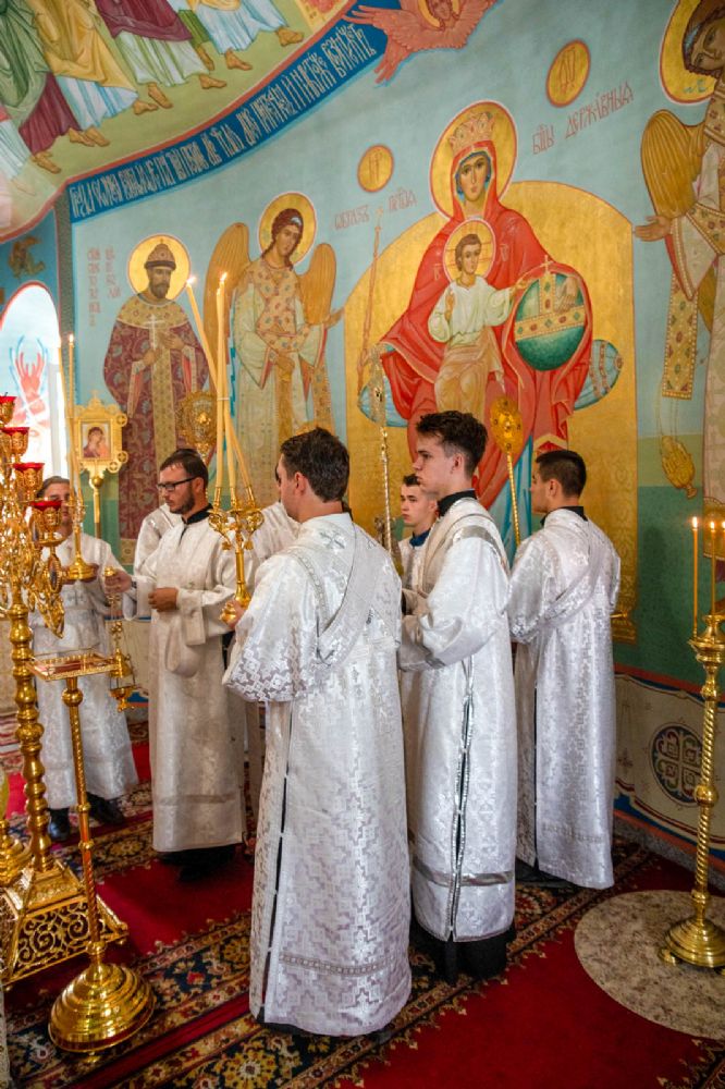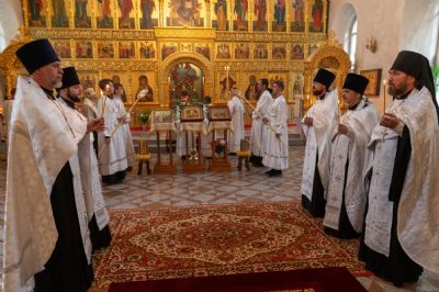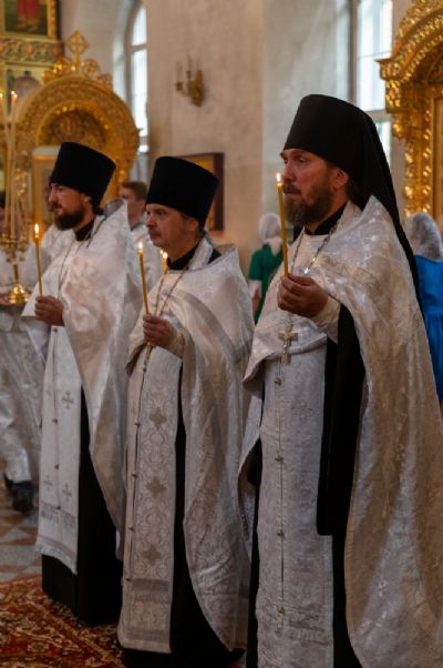 Владыке сослужили секретарь Йошкар-Олинского епархиального управления иеромонах Серафим (Пасанаев), полковой священник иерей Георгий Колотов, клирики храма протоиерей Василий Лихачев, иерей Виктор Умрихин, иерей Николай Бабич и диакон Роман Соловьев, а также протодиакон Михаил Козловский. Песнопения исполнял хор храма под руководством регента Елены Умрихиной.