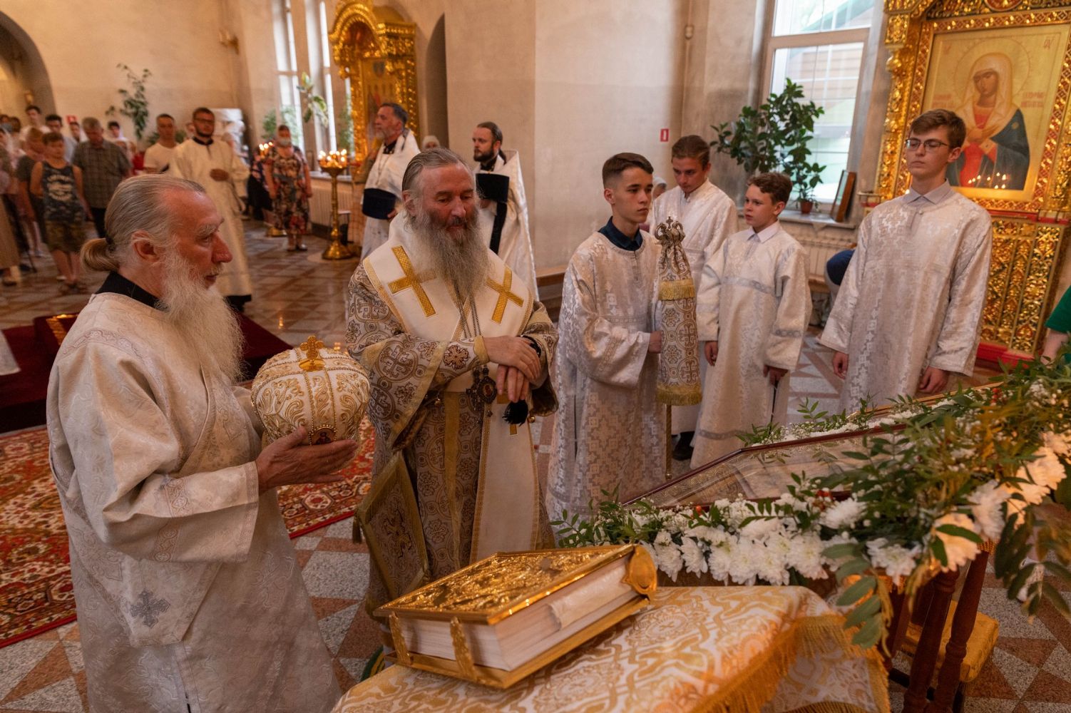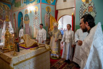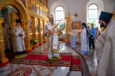 По окончании богослужения была вознесена молитва перед иконой Богородицы «Неопалимая Купина». Владыка призвал всех верующих молиться и дома о прекращении пожаров.