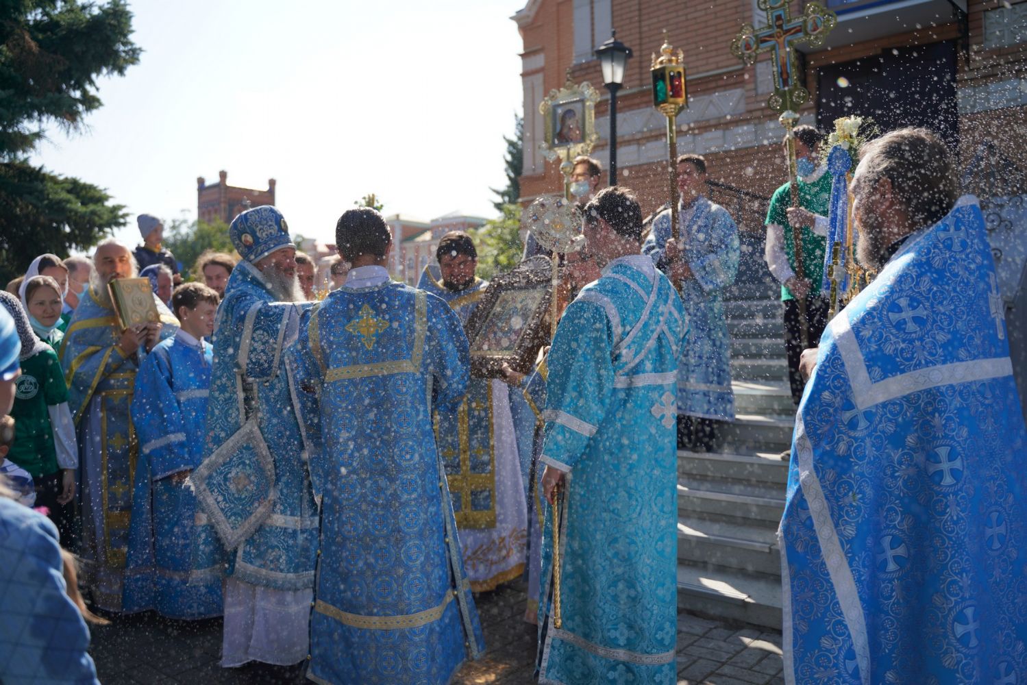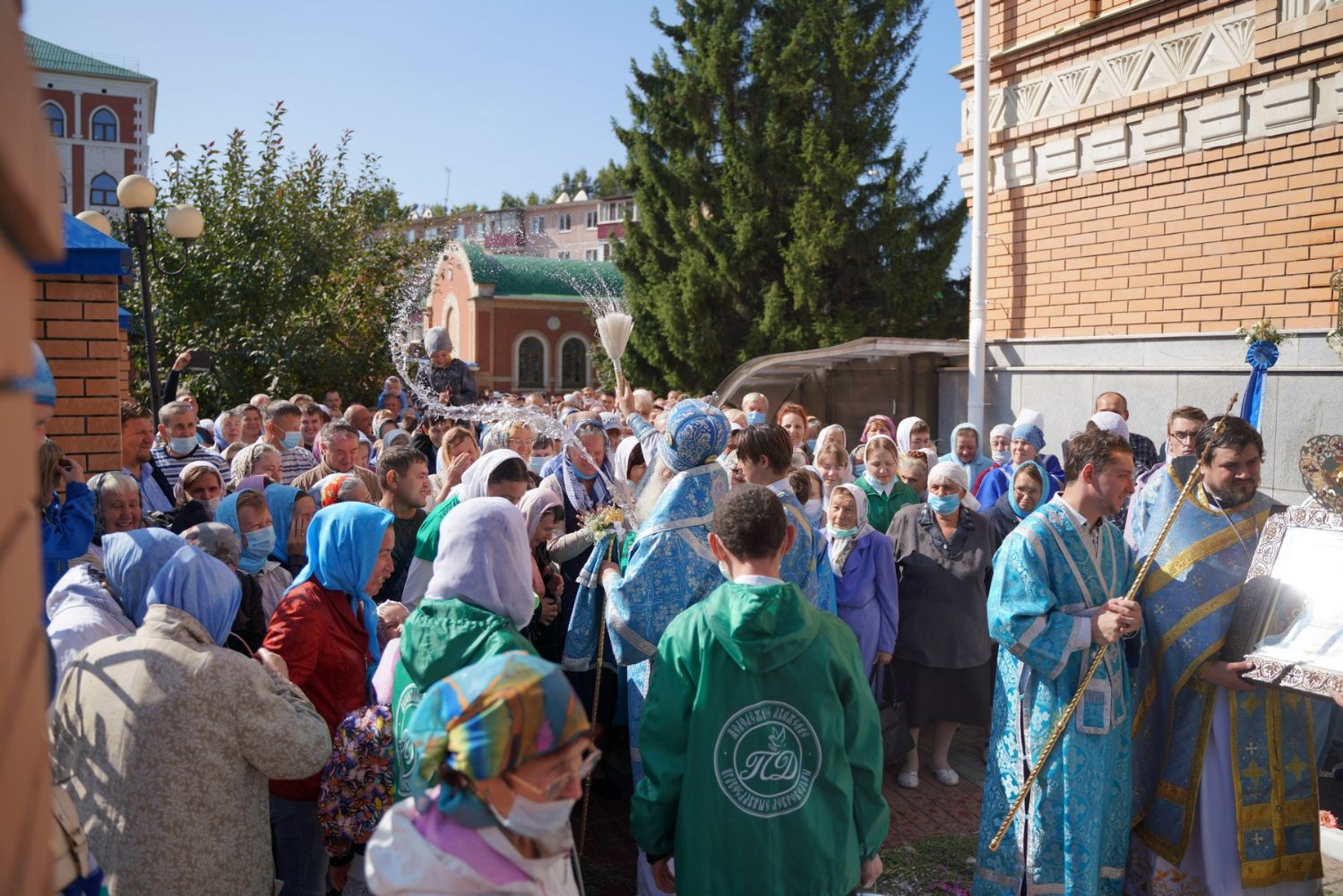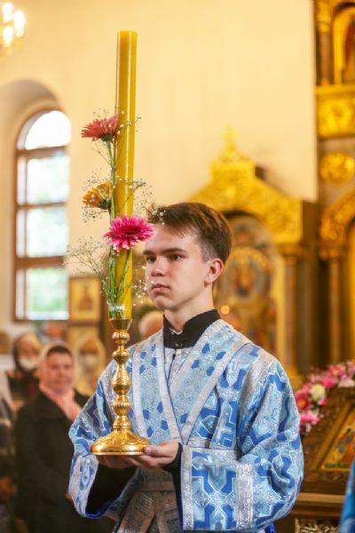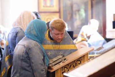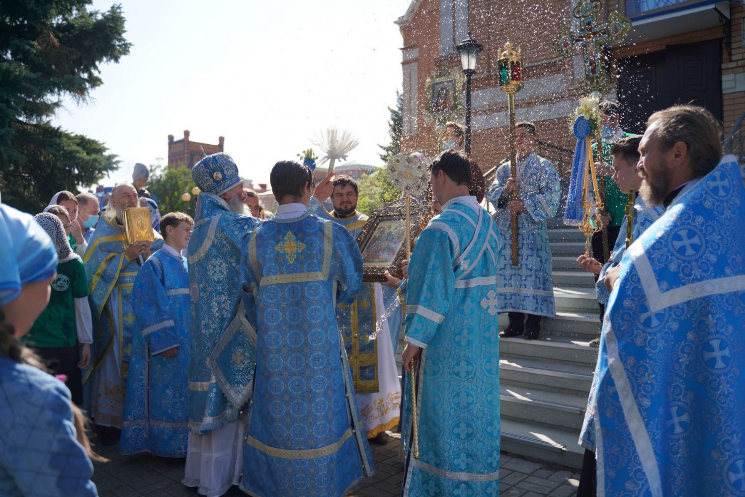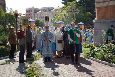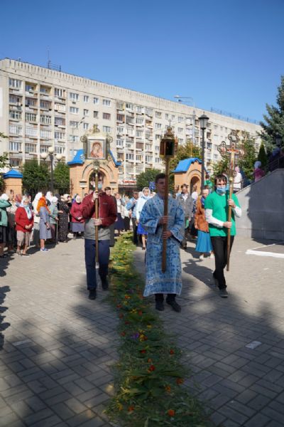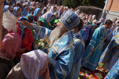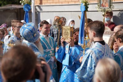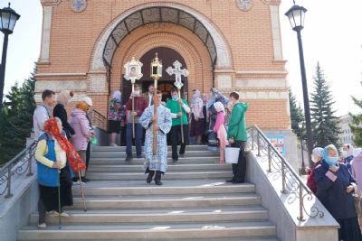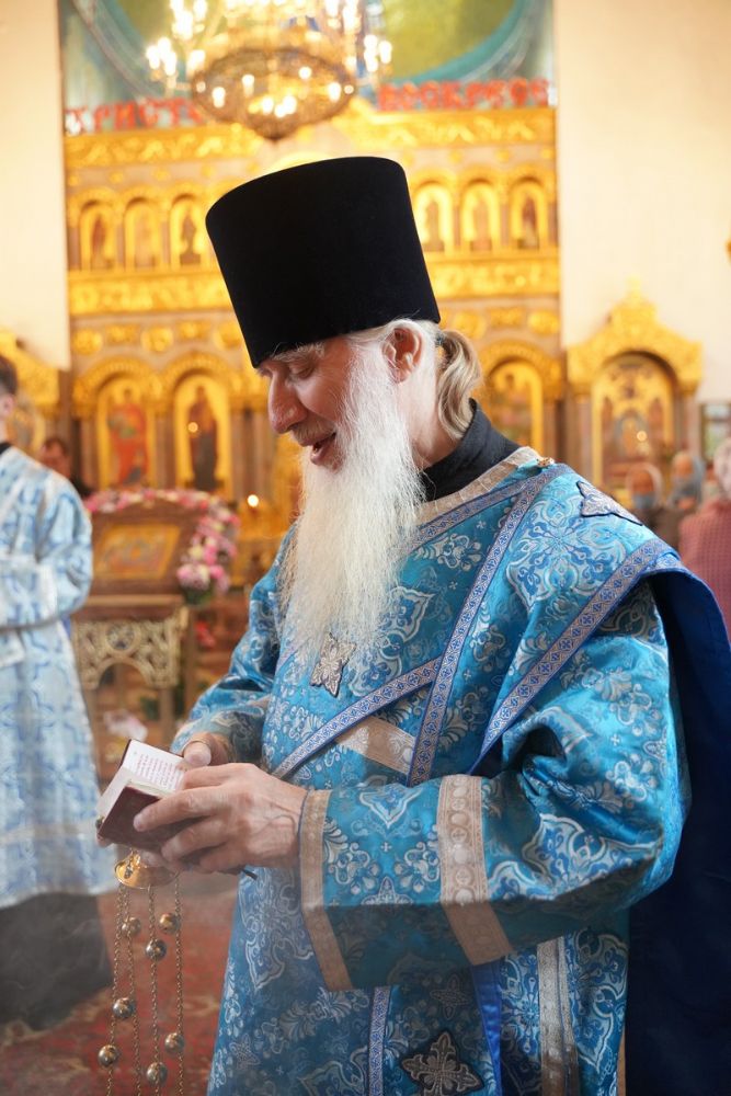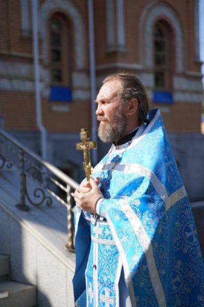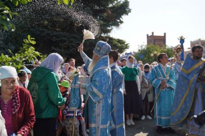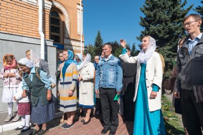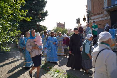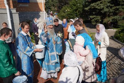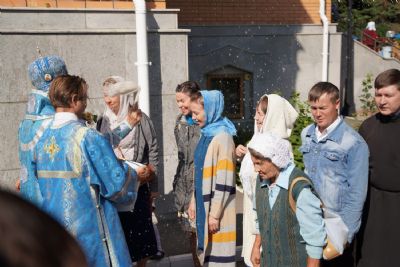 После Литургии, по традиции престольных праздников, прошел крестный ход вокруг храма с чтением Евангелия и кроплением святой водой.