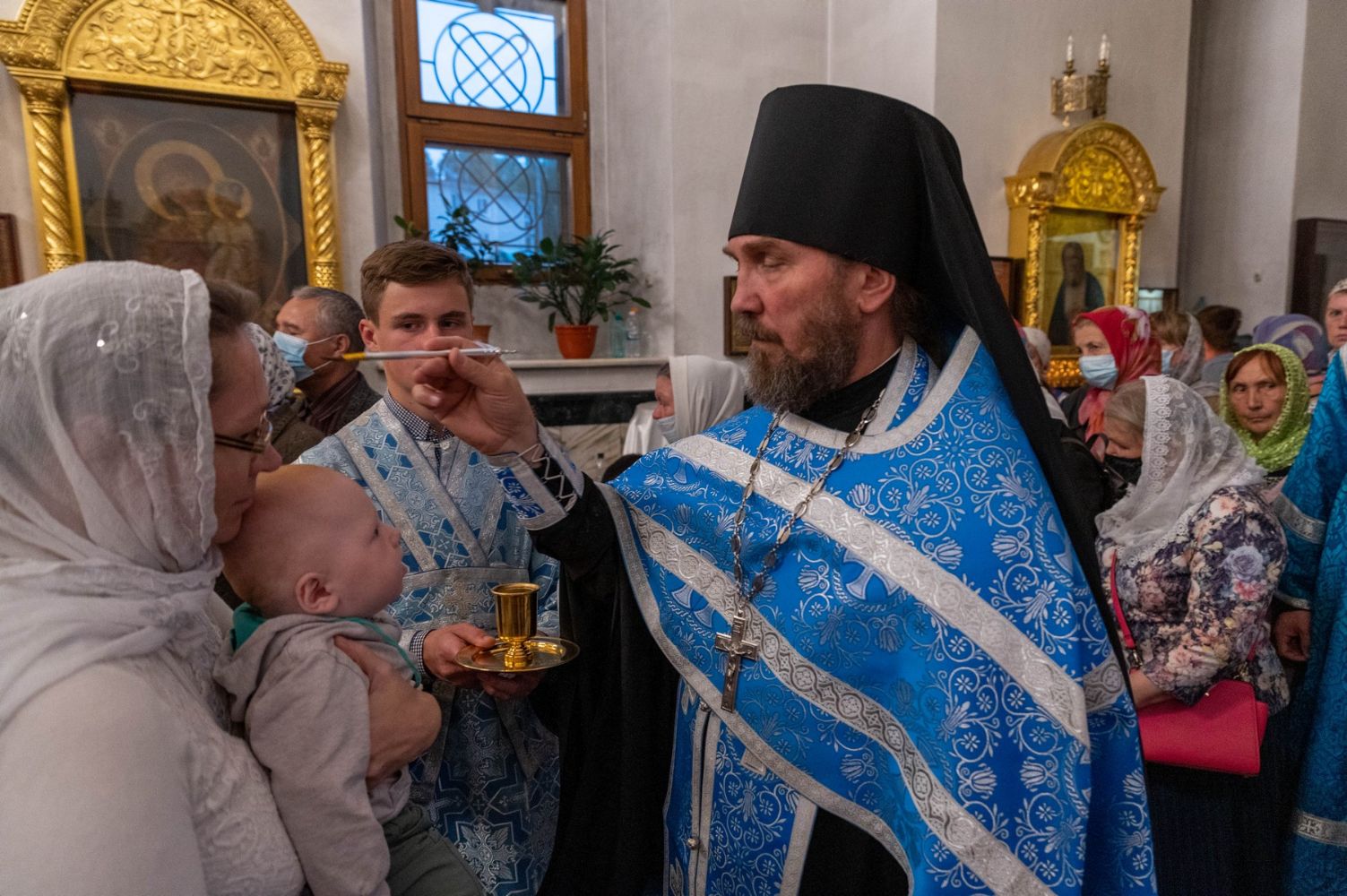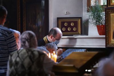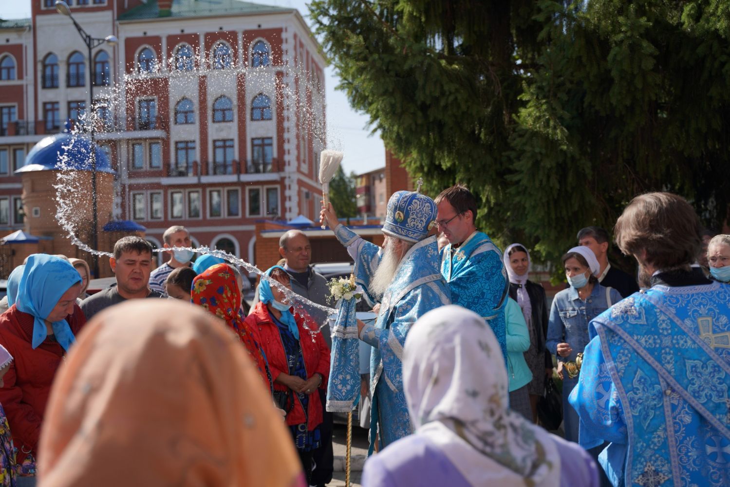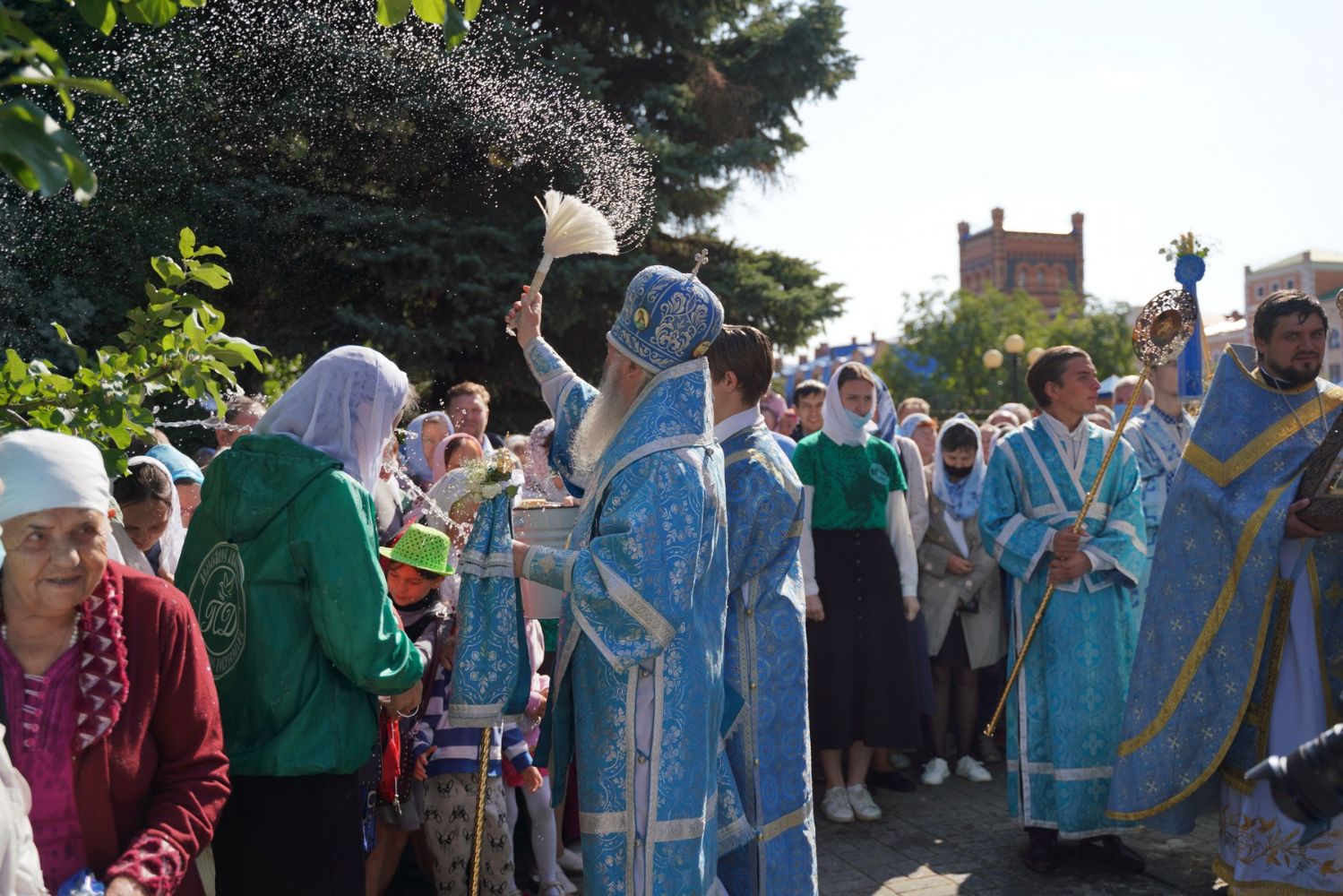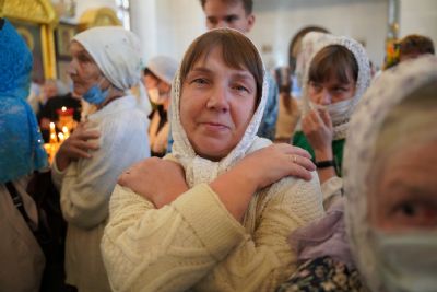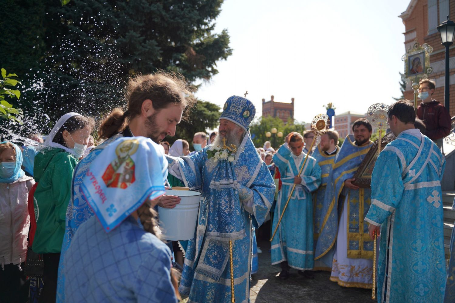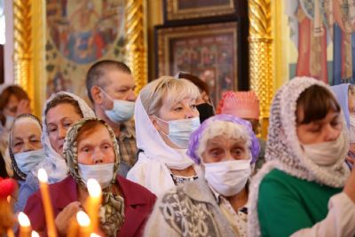 После Литургии, по традиции престольных праздников, прошел крестный ход вокруг храма с чтением Евангелия и кроплением святой водой.