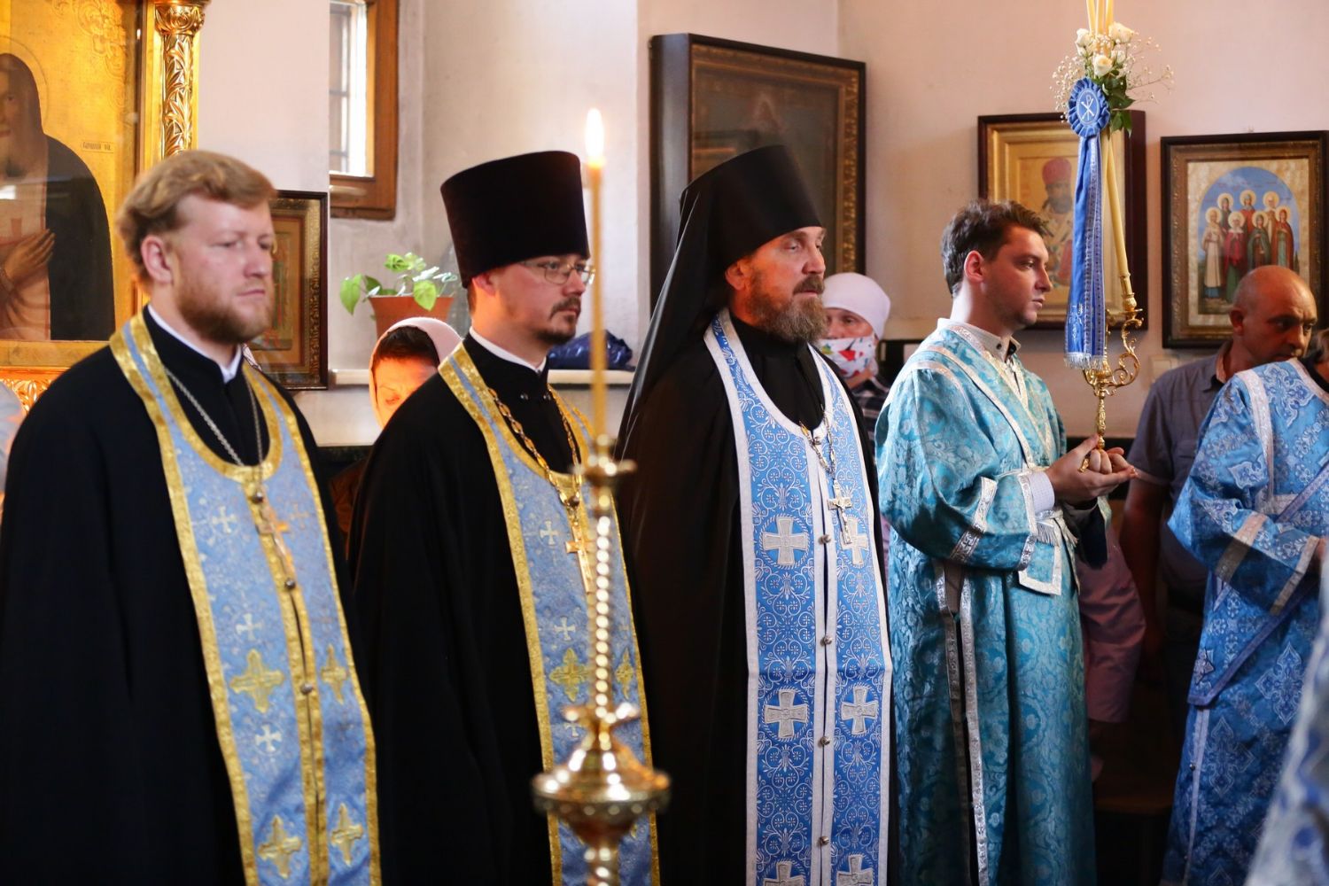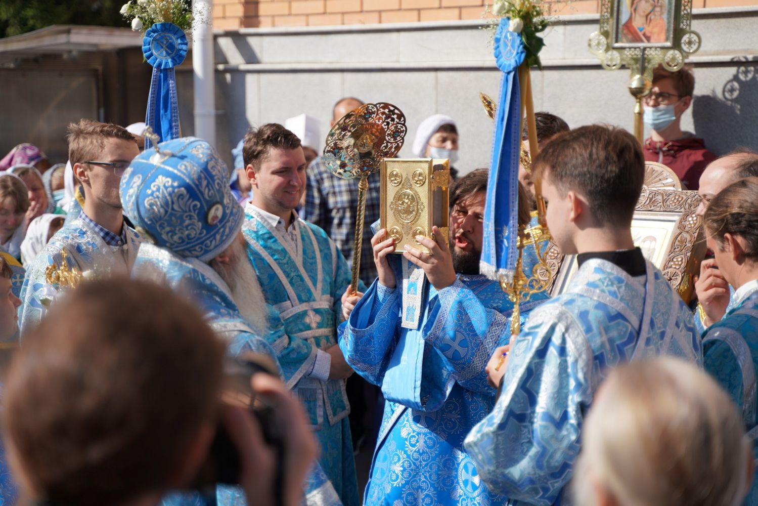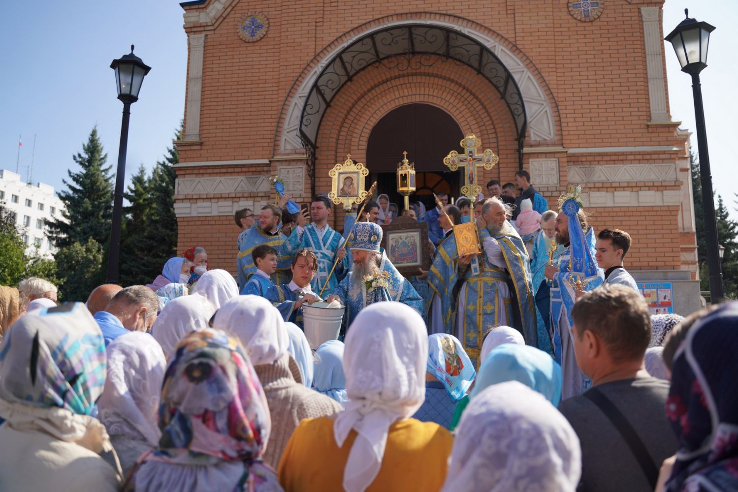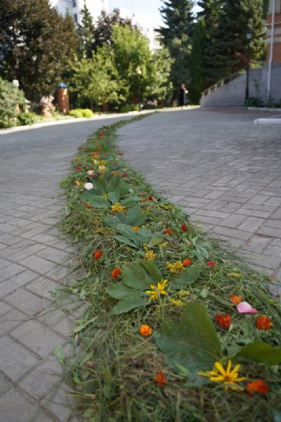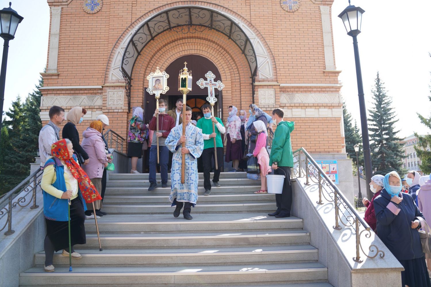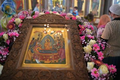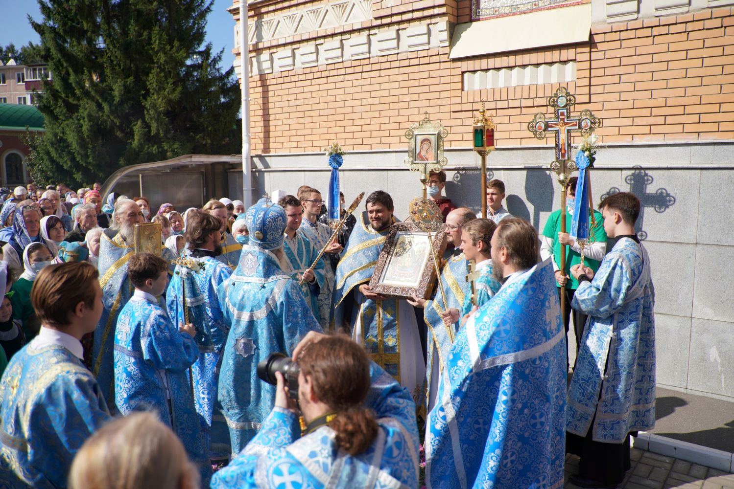 После Литургии, по традиции престольных праздников, прошел крестный ход вокруг храма с чтением Евангелия и кроплением святой водой.
