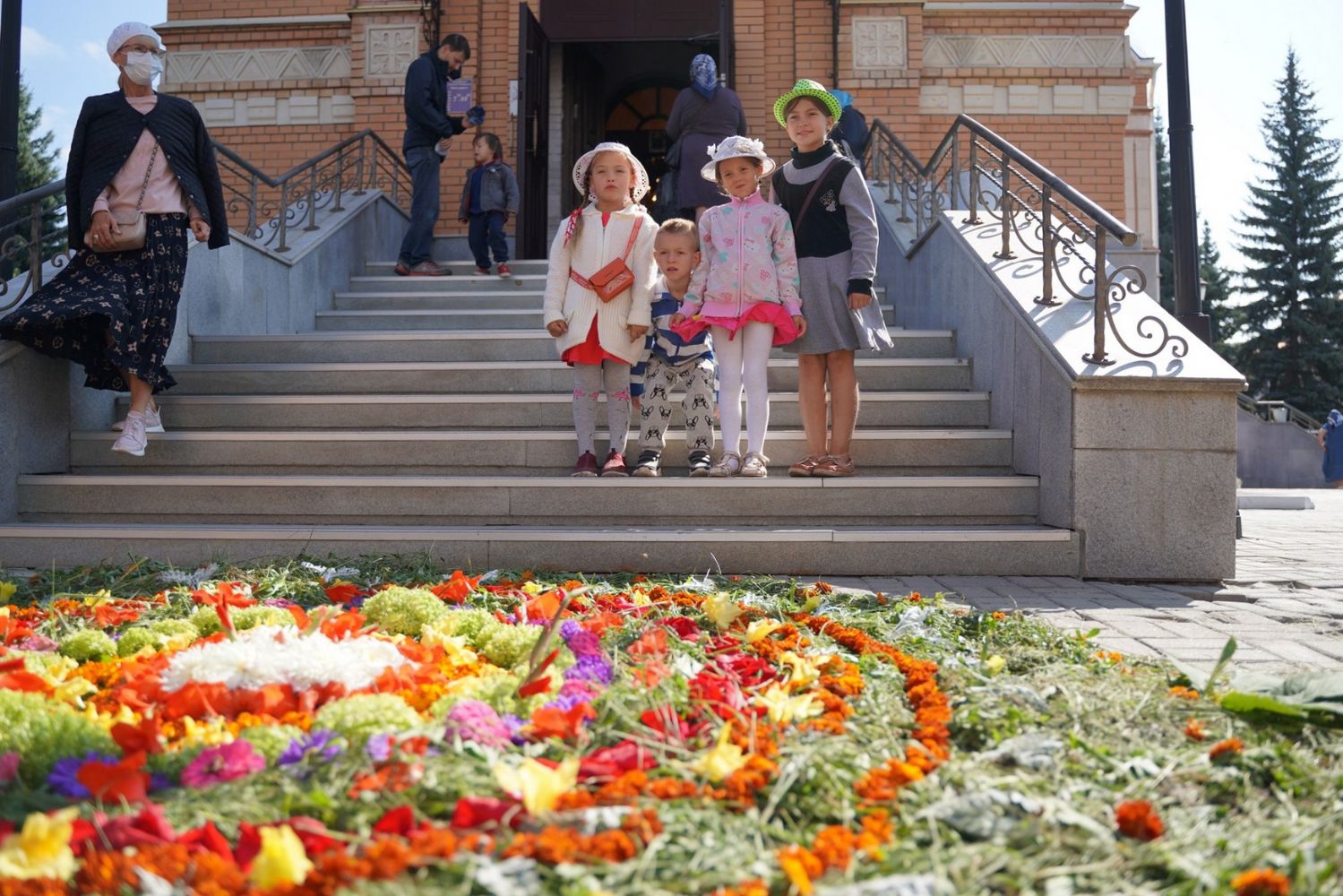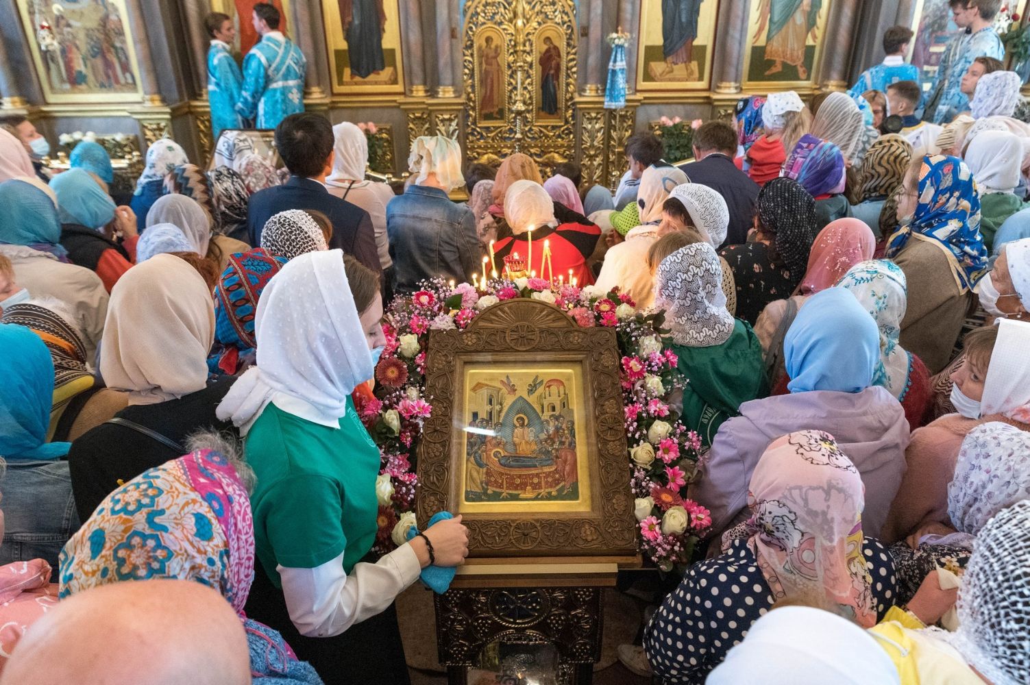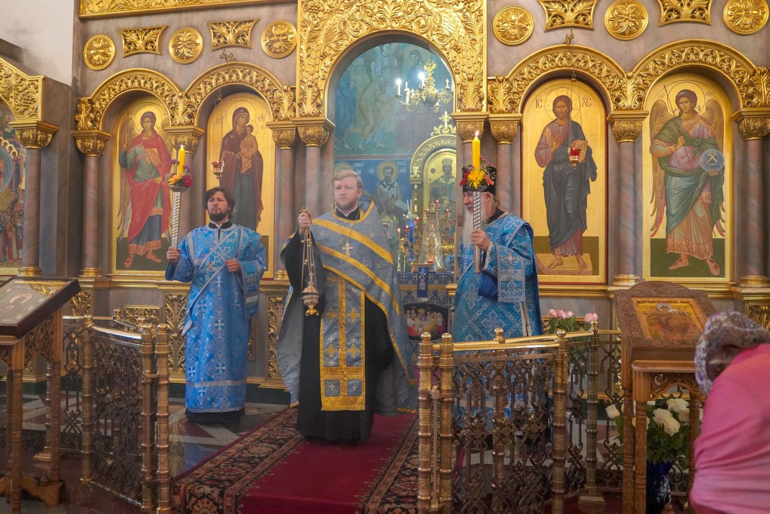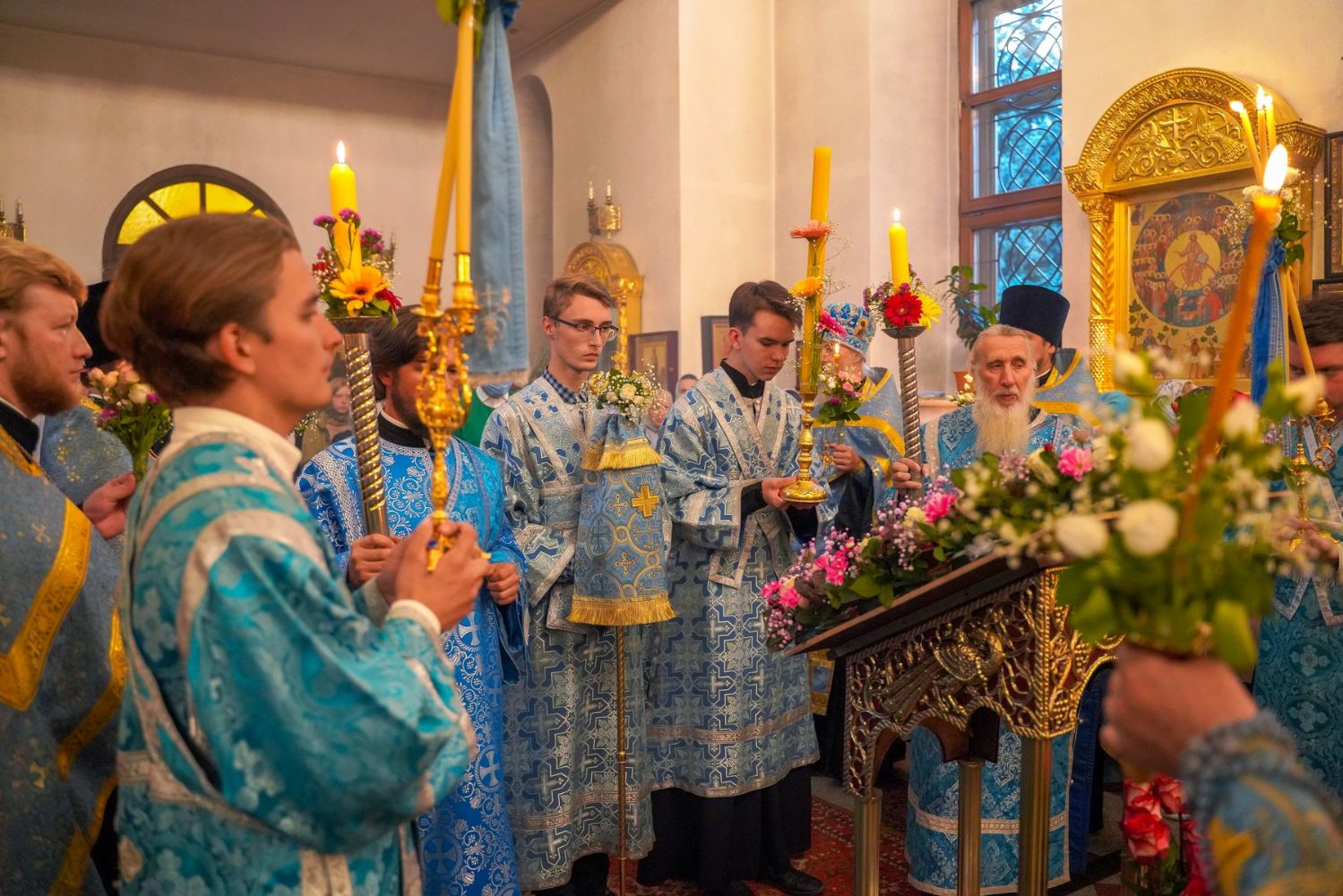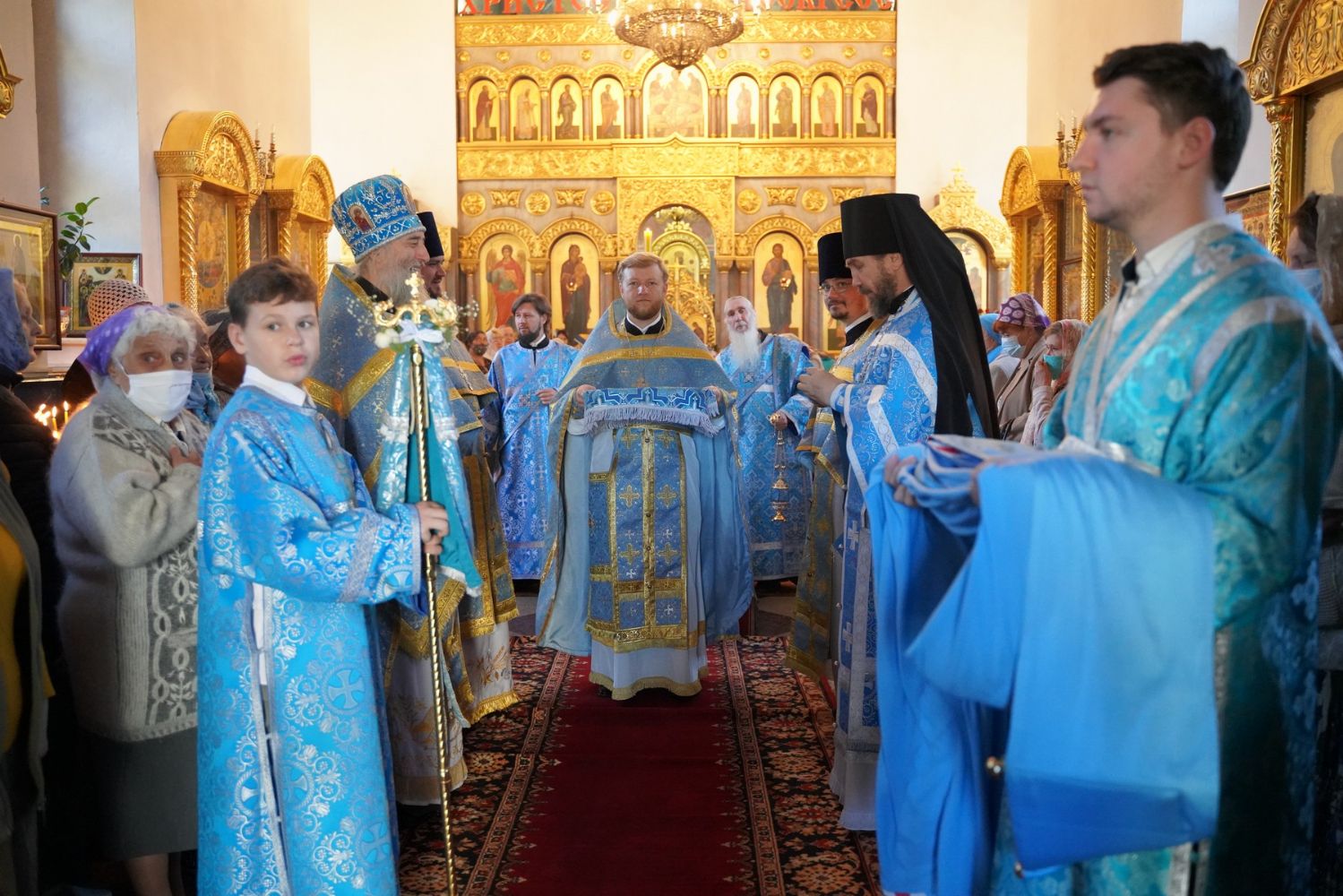 После Литургии, по традиции престольных праздников, прошел крестный ход вокруг храма с чтением Евангелия и кроплением святой водой.