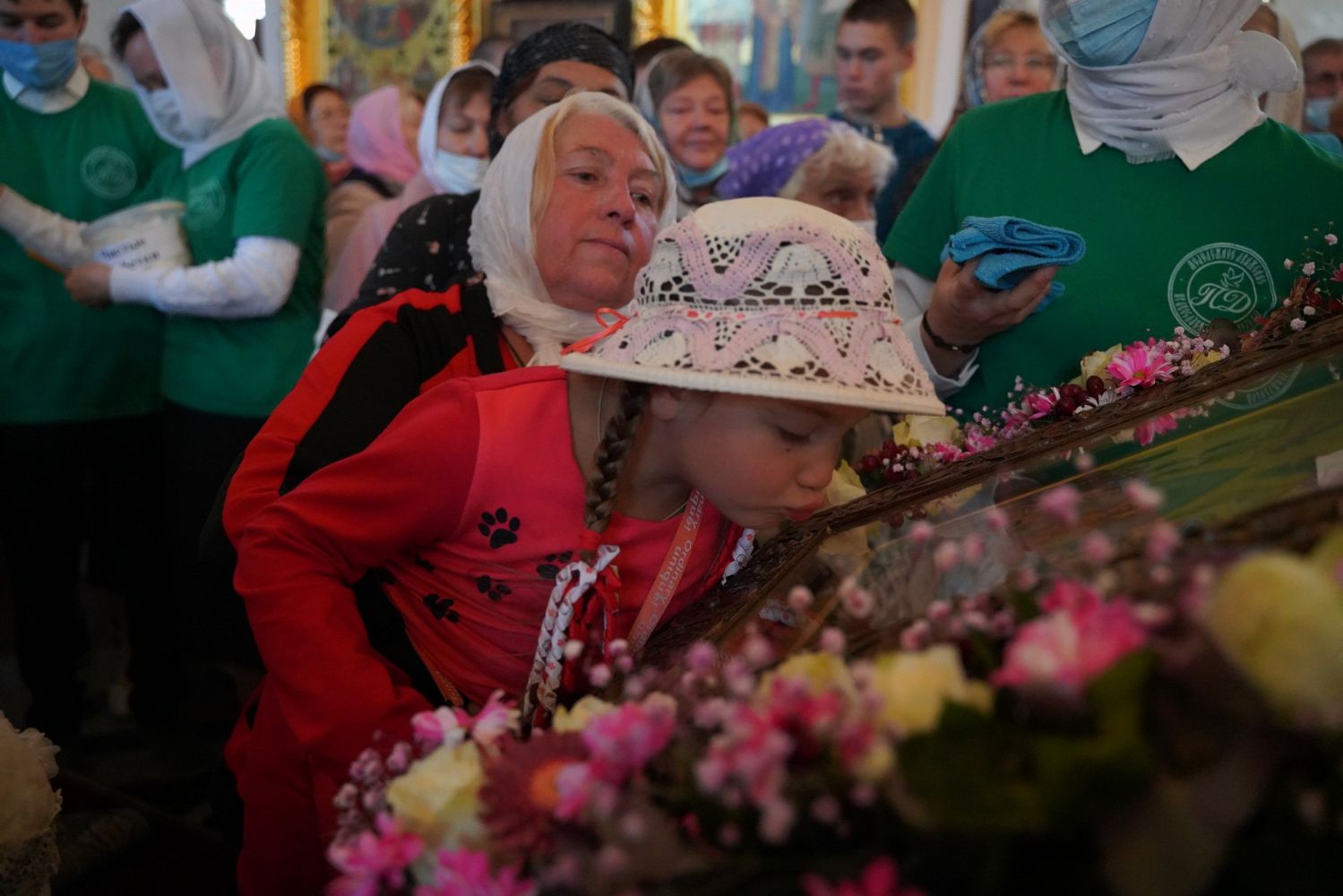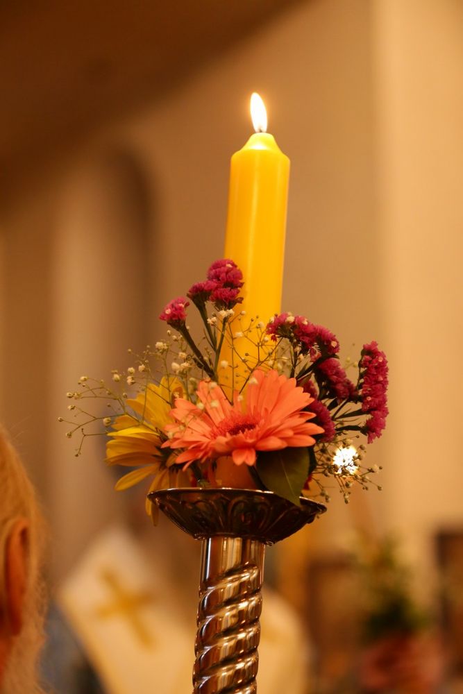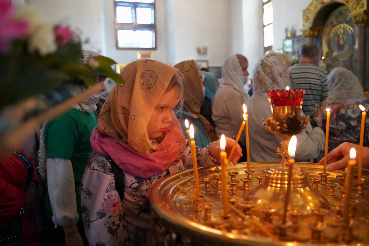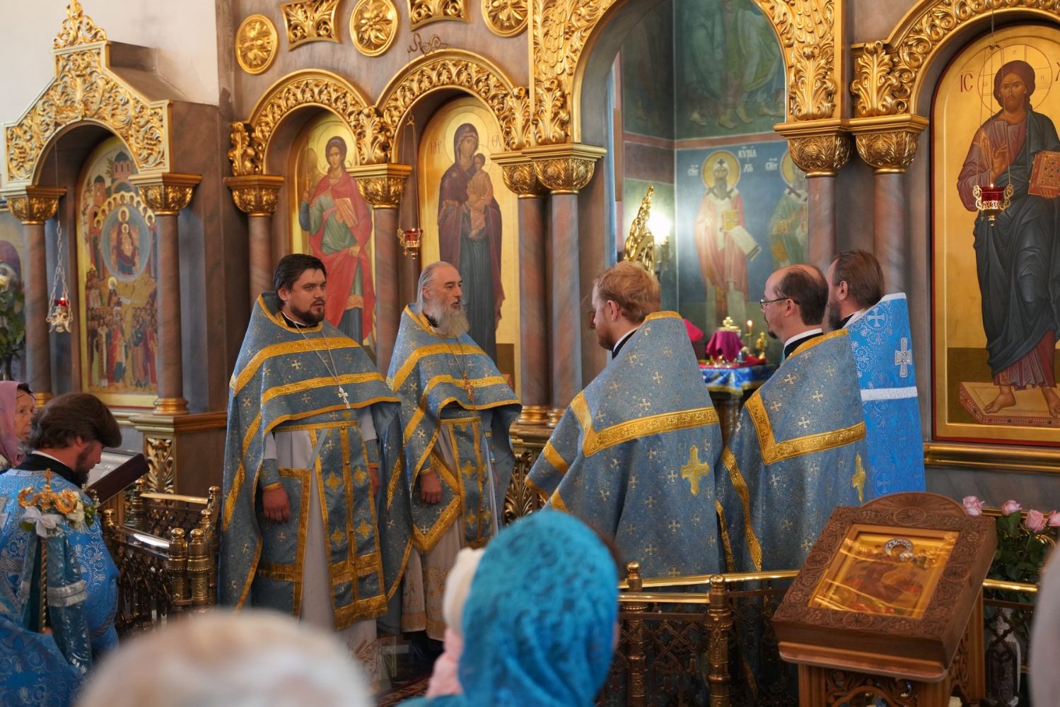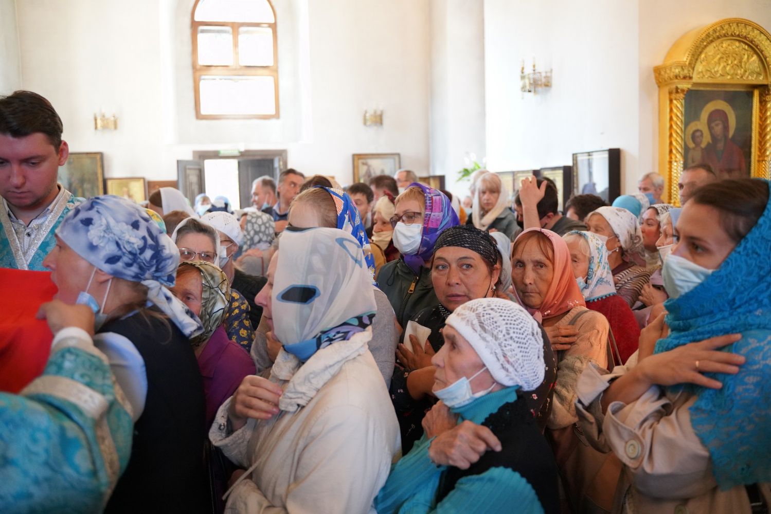 После Литургии, по традиции престольных праздников, прошел крестный ход вокруг храма с чтением Евангелия и кроплением святой водой.