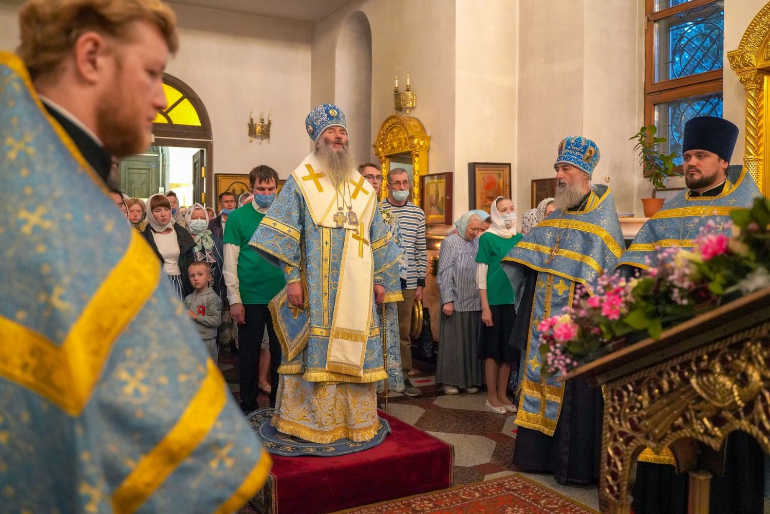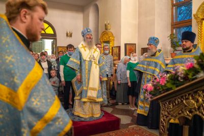Его Высокопреосвященству сослужили секретарь Йошкар-Олинского епархиального управления иеромонах Серафим (Пасанаев), настоятель храма митрофорный протоиерей Сергий Филонов, клирики храма и протодиакон Михаил Козловский. Песнопения исполнял хор храма под управлением регента Анастасии Филоновой.