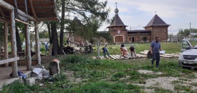 Традиционно распорядок дня состоял из общей молитвы, трудового послушания под руководством Сергея Анатольевича Заболотских и духовно-культурной программы. За эти несколько дней «десантники» успели многое: установили столбы для ограды территории, завершили утепление стен богатырского терема и продолжили обивку этих стен блокхаузом, сделали уборку большой территории, перенесли и сложили дрова и кирпичи, сделали многое другое. Ребята получили опыт работы с различными инструментами и оборудованием. почувствовали радость общего дела, когда видишь результат коллективного труда.