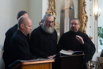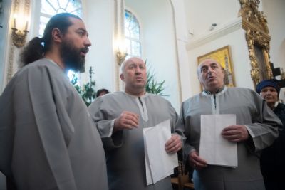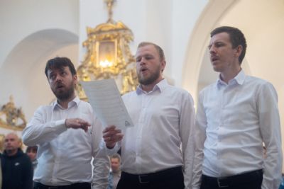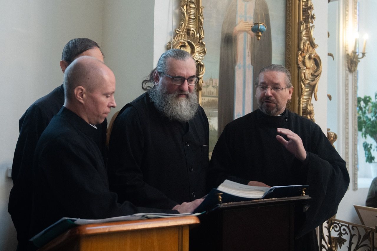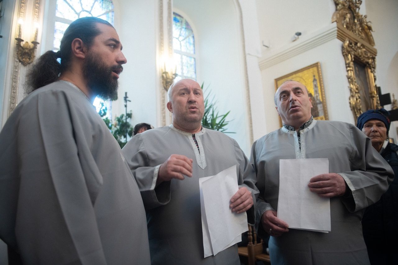Богослужебные песнопения исполняли архиерейский мужской хор под управлением Дениса Рогова, вокальный мужской квартет Раифского монастыря «Притча» под управлением диакона Сергия Уренцева, грузинский мужской квартет. Ряд песнопений прозвучал на грузинском языке.