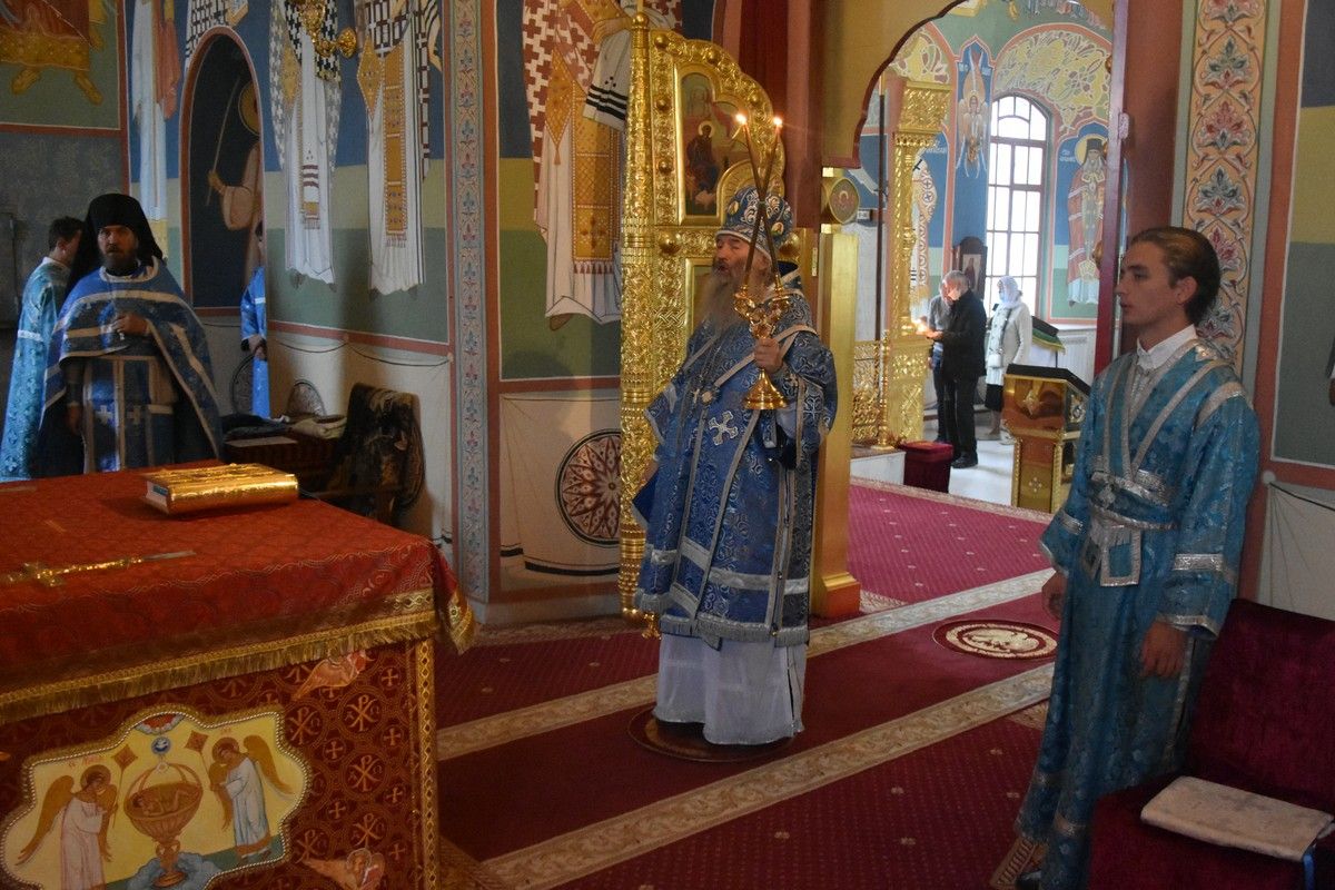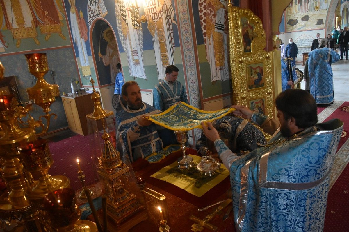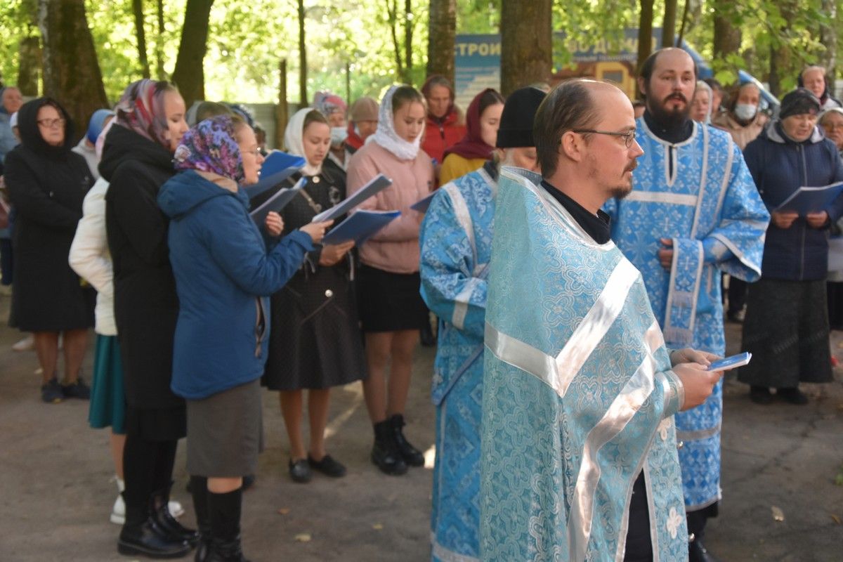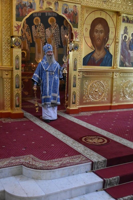 Архипастырям сослужили клирик Успенского храма иерей Алексий Михеев и протодиакон Михаил Козловский. Песнопения исполнял детско-юношеский хор «Благовест» под управлением Надежды Поздеевой. Традиционно, акафист со священством и хором пели все прихожане.