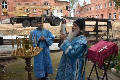 В воскресенье митрополит Иоанн возглавил Литургию в Троицком храме и молебен на стройплощадке в Тарханово 2783