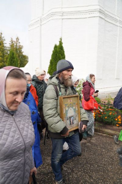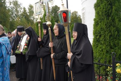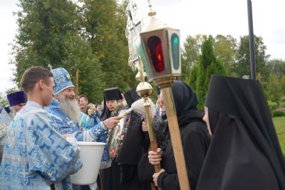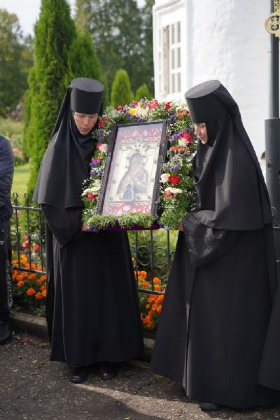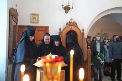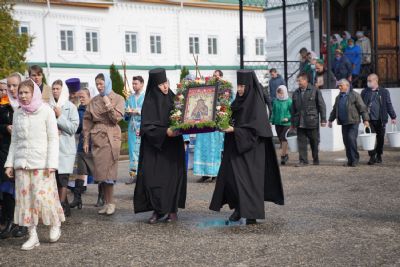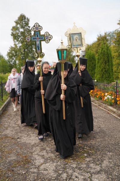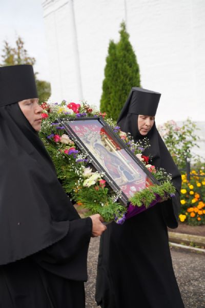 После Литургии, по традиции престольных праздников, прошел крестный ход вокруг храма со чтением Евангелия и кроплением святой водой. Затем игумения Варнава отвезла Мироносицкую икону в храм Рождества Пресвятой Богородицы села Семеновка. Сопровождает святыню из храма в храм одна из сестер Мироносицкой обители – монахиня Васса.