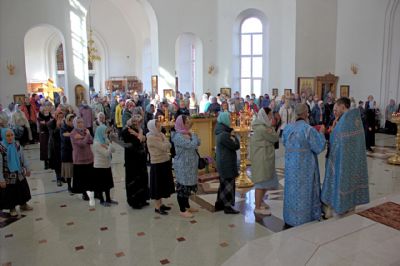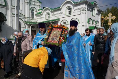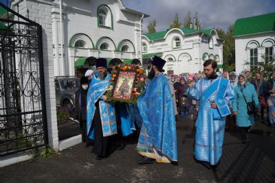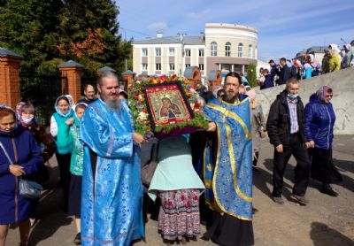 Вечером в храме состоялось всенощное бдение, а утром 11 сентября – Божественная литургия. После традиционного крестного хода вокруг храма с чтением Евангелия и кроплением святой водой Пречистая Богоматерь в Ее чудотворном образе «Мироносицкая» продолжила обход Своих владений, отправившись в поселок Нурма, в храм Казанской иконы Божией Матери.