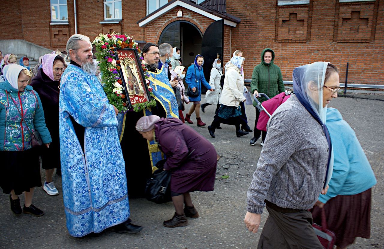 Утром 10 сентября после Божественной литургии состоялся крестный ход вокруг храма, после чего икона Пресвятой Богородицы была отправлена на автомобиле в поселок Медведево, в храм Державной иконы Божией Матери, где ее радостно встретили духовенство и прихожане во главе с настоятелем храма протоиереем Алексием Михайловым.