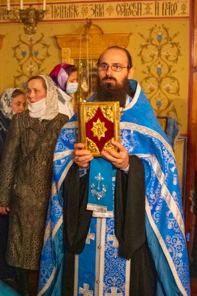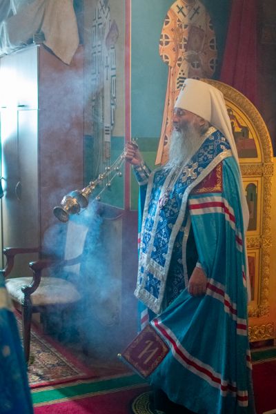 Вечером этого же дня митрополит Иоанн возглавил в домовом храме епархиального управления всенощное бдение. Архипастырю сослужили секретарь епархиального управления иеромонах Серафим (Пасанаев), клирик Вознесенского собора иерей Иоанн Кристев и протодиакон Михаил Козловский. Песнопения исполнял детско-юношеский хор «Благовест» под управлением Надежды Поздеевой.