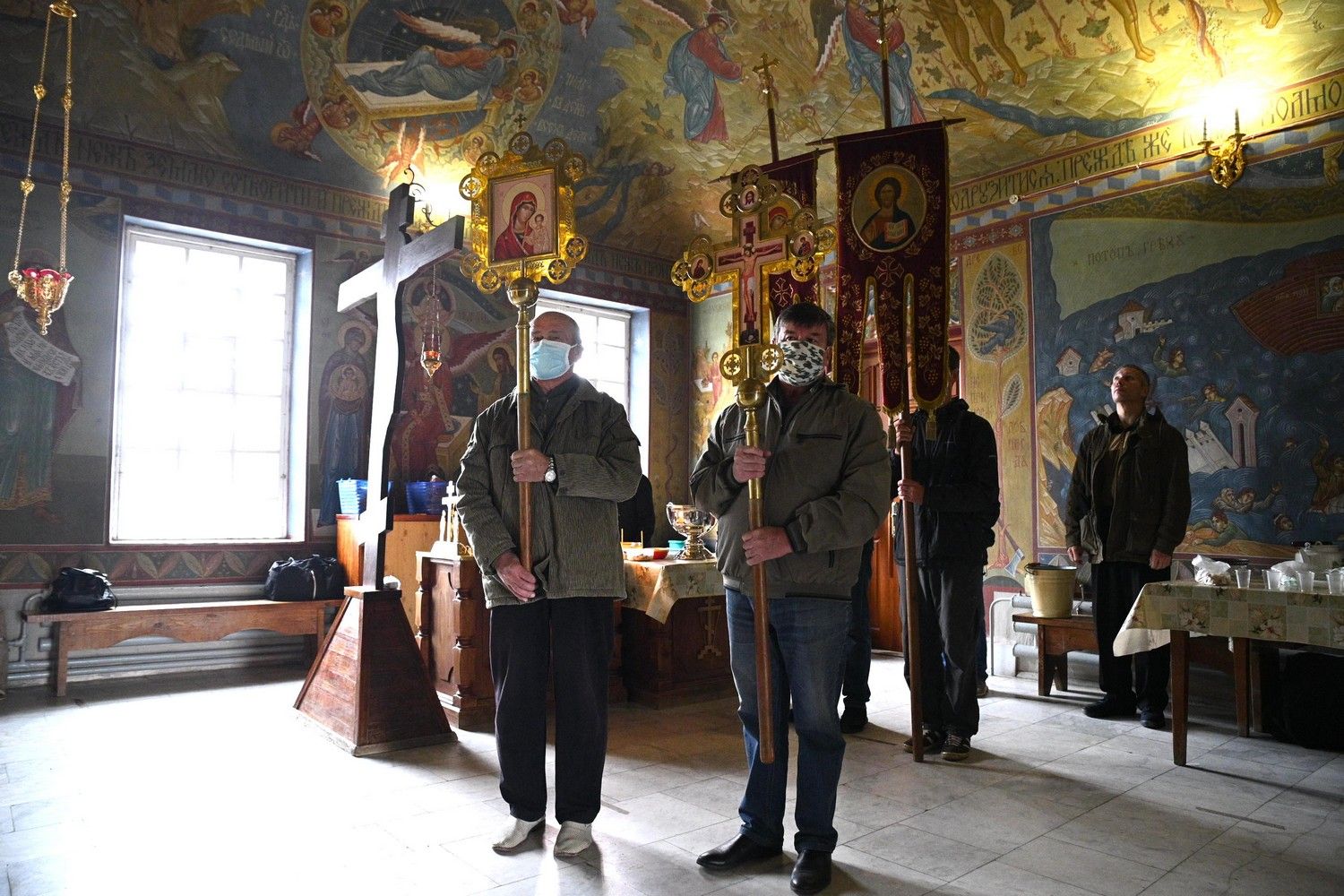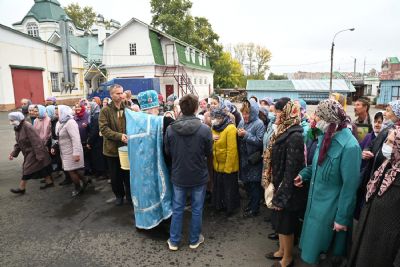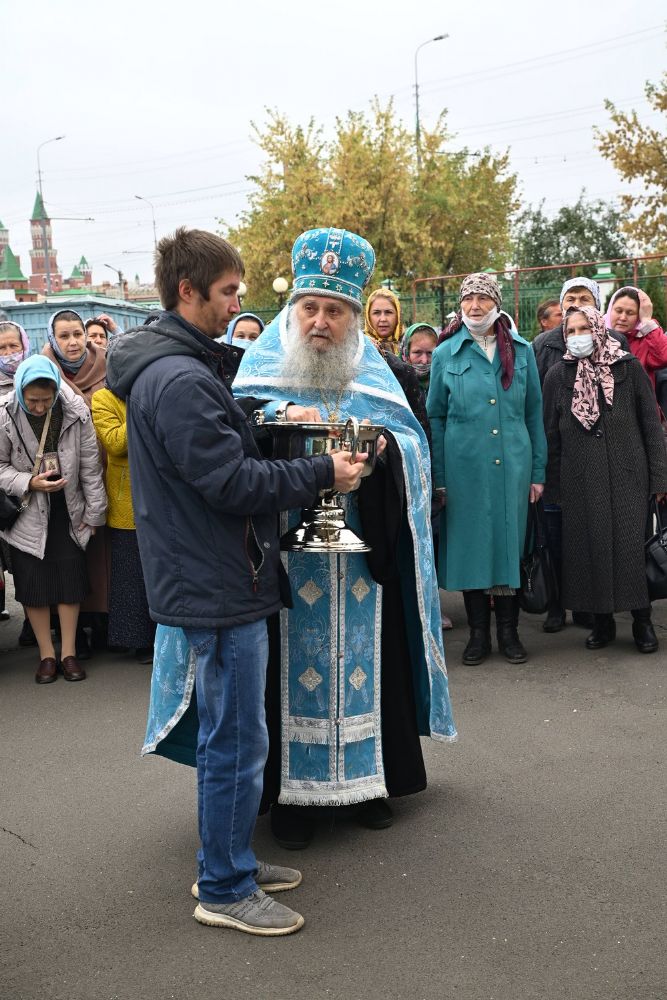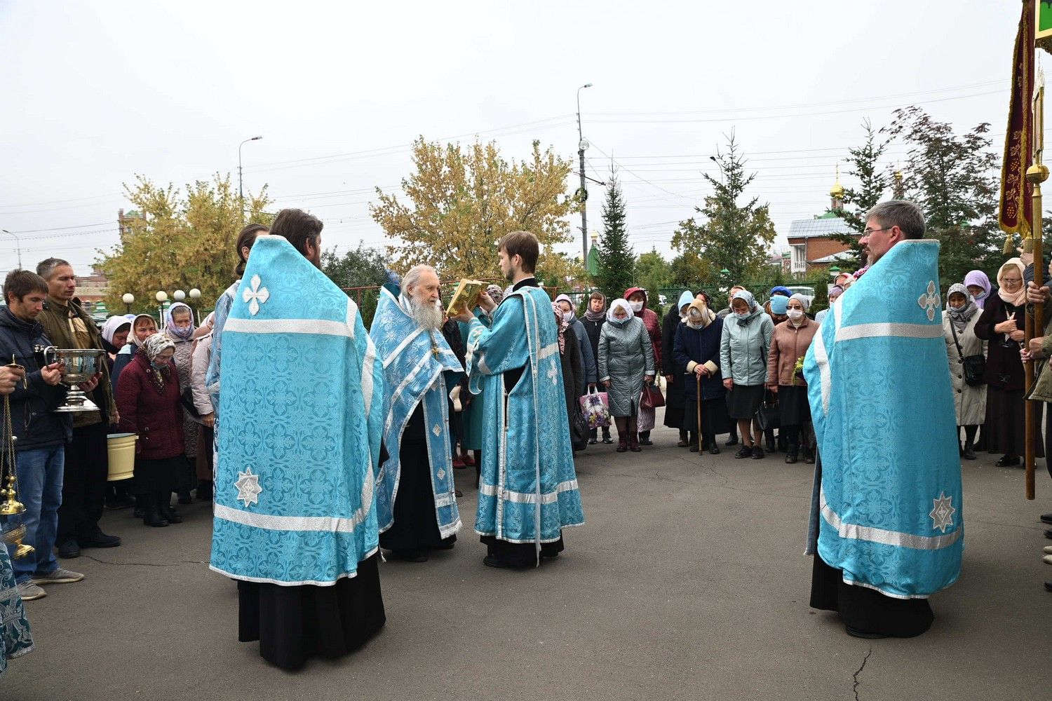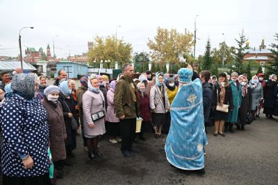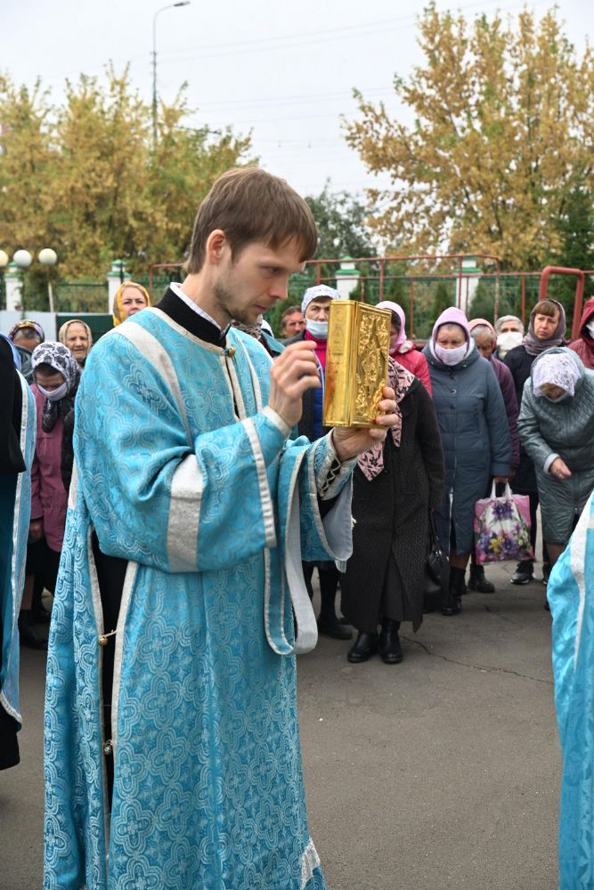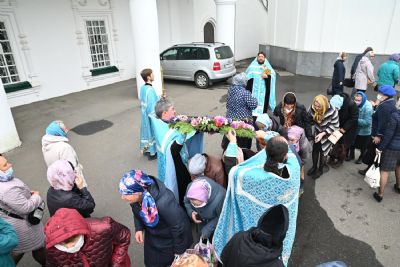 После Литургии был совершен крестный ход вокруг храма с чтением Евангелия и кроплением святой водой. И затем икона Божией Матери «Мироносицкая» под звон колоколов была на автомобиле отправлена в Благовещенский собор, где торжественной архиерейской службой будет праздноваться церковное новолетие.