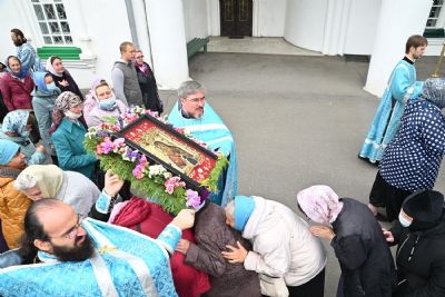 Возглавил Литургию настоятель Вознесенского собора митрофорный протоиерей Евгений Кутырев в сослужении духовенства храма. Поклониться святыне, обратиться к Пречистой с мольбами и получить от Нее благодатное утешение собралось множество верующих.
