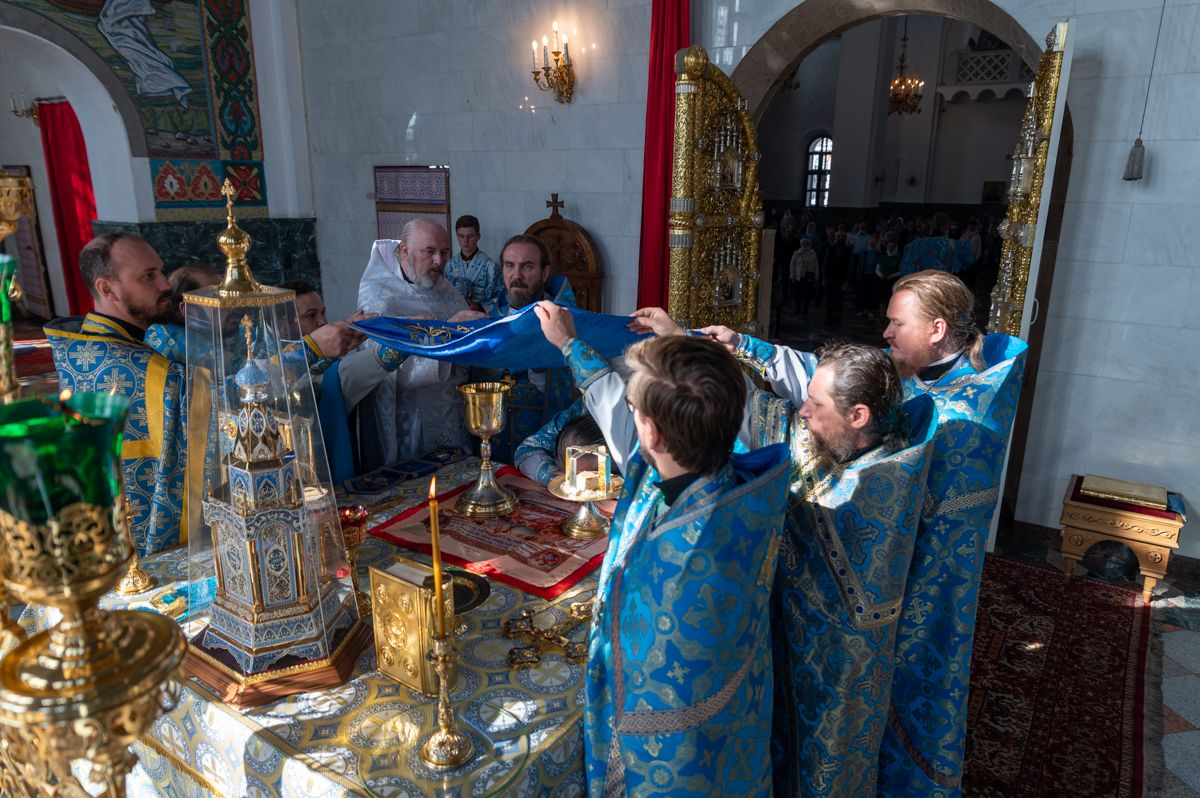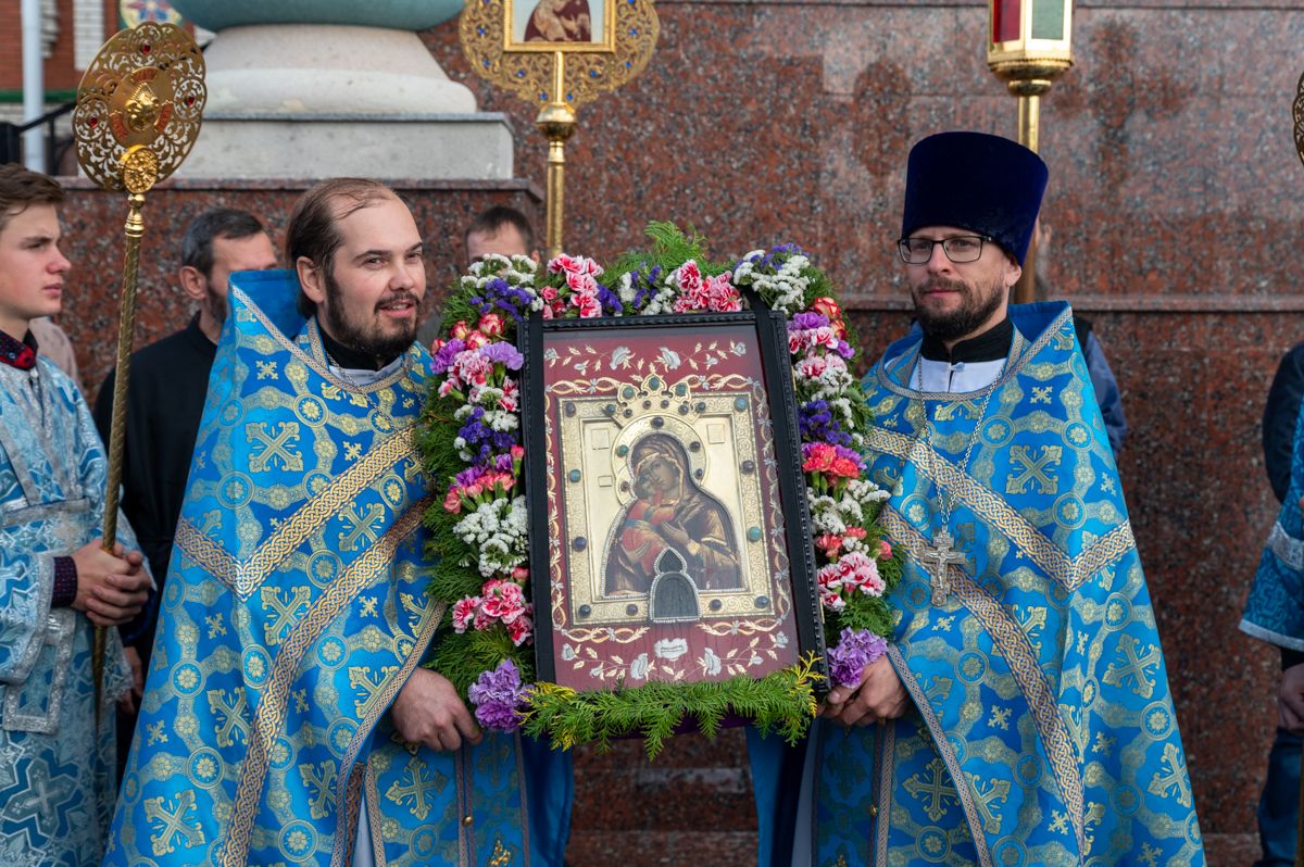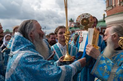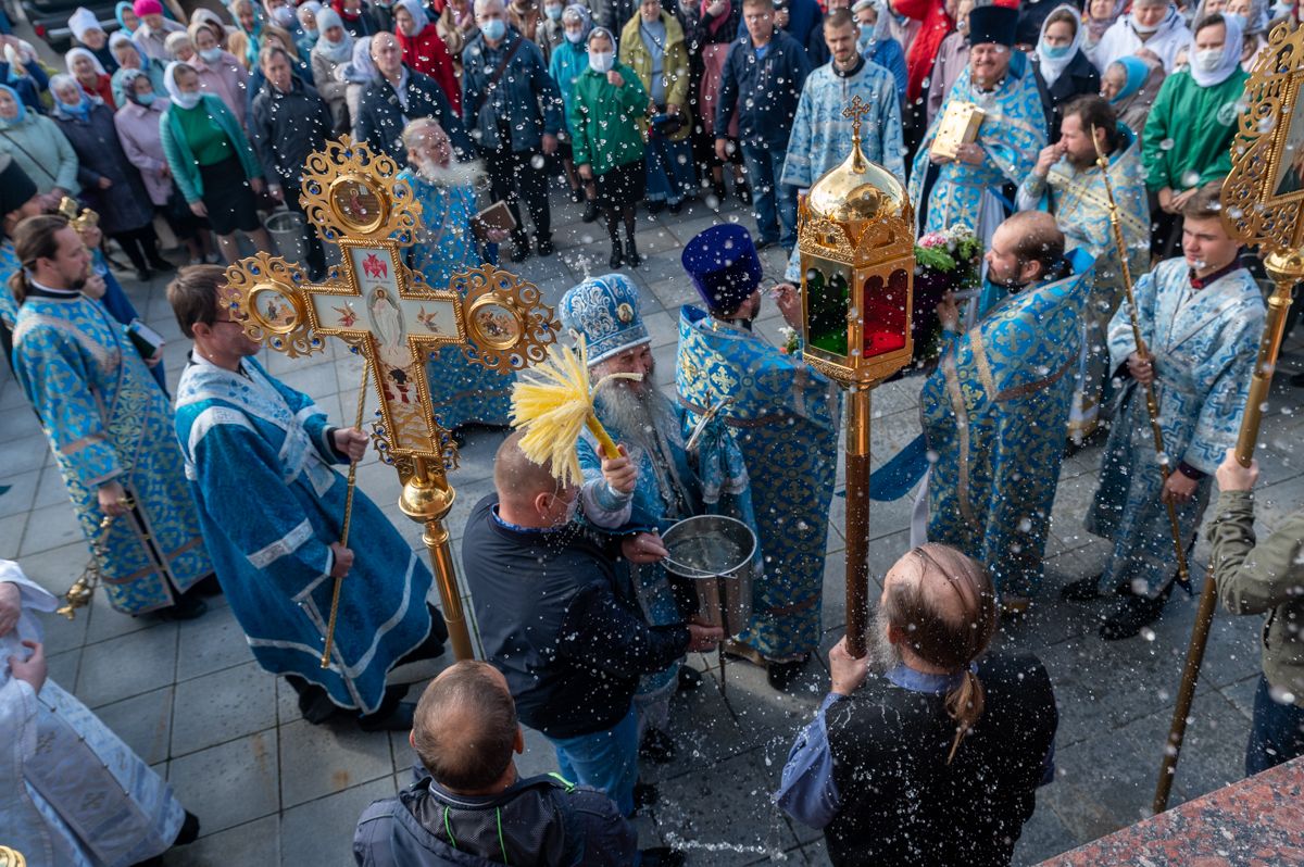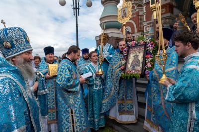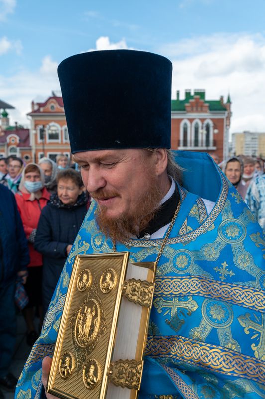После Литургии был совершен молебен на новолетие и крестный ход вокруг кафедрального собора со чтением Евангелия и кроплением святой водой. Затем Мироносицкая икона Божией Матери была отправлена в Успенский храм г. Йошкар-Олы.