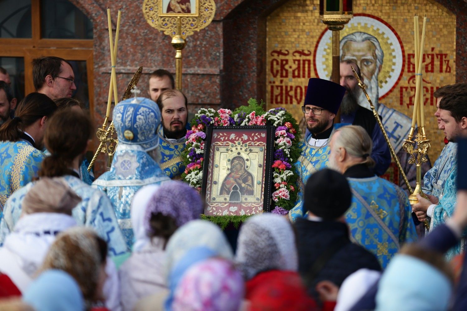 После присоединения к Святой Руси нашего Марийского края Пречистая Богоматерь отметила его Себе в удел, явив благодатный образ, через который Она утешает всех притекающих к Ней. И если мы порой забываем приходить к Ней в Мироносицкую обитель, то сегодня Она Сама пришла к нам, чтобы благословить нас на новый церковный год, чтобы у Престола Божия испросить для нас всяческих благ – и духовных, и материальных. Чтобы оградить святую Церковь от ересей и расколов, от сатанинских языческих верований – чтобы всем нам пребывать в единении и верности Господу нашему Иисусу Христу. Чтобы мы, вручив волю свою в руки Господни, жили в вере и благочестии, благодаря Бога за все».