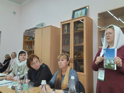 Затем состоялось выступление эксперта педагогического конкурса «Серафимовский учитель», редактора сборника методических материалов Екатерины Решетовой на тему «Серафимовский учитель» – миссионер Русского Севера (перспективы развития северных территорий как задача сохранения духовно-нравственной традиции)».
