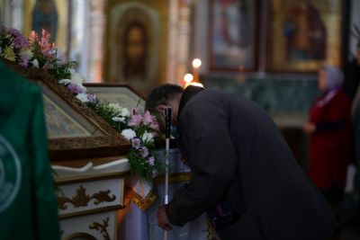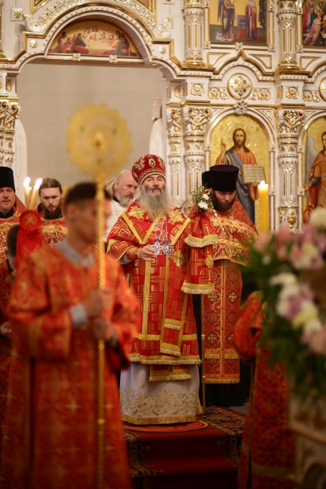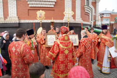 В честь престольного праздника за богослужением читались Пасхальные часы, звучали избранные Пасхальные песнопения. После Литургии прошел крестный ход вокруг храма со чтением Евангелия и кроплением святой водой. Затем митрополит Иоанн обратился к собравшимся с архипастырским словом: «Христос Воскресе! Для каждого православного христианина эти пасхальные возгласы заставляют вновь и вновь возрадоваться душой о Воскресшем Христе и возблагодарить Его за ту любовь, которую Он открыл нам на Кресте, излив Свою дражайшую Кровь, и Своим Воскресением даровал нам жизнь вечную».