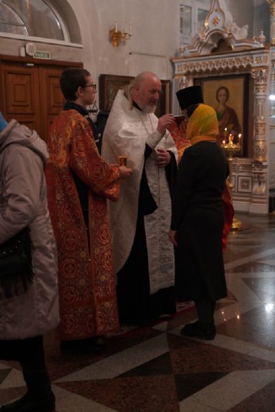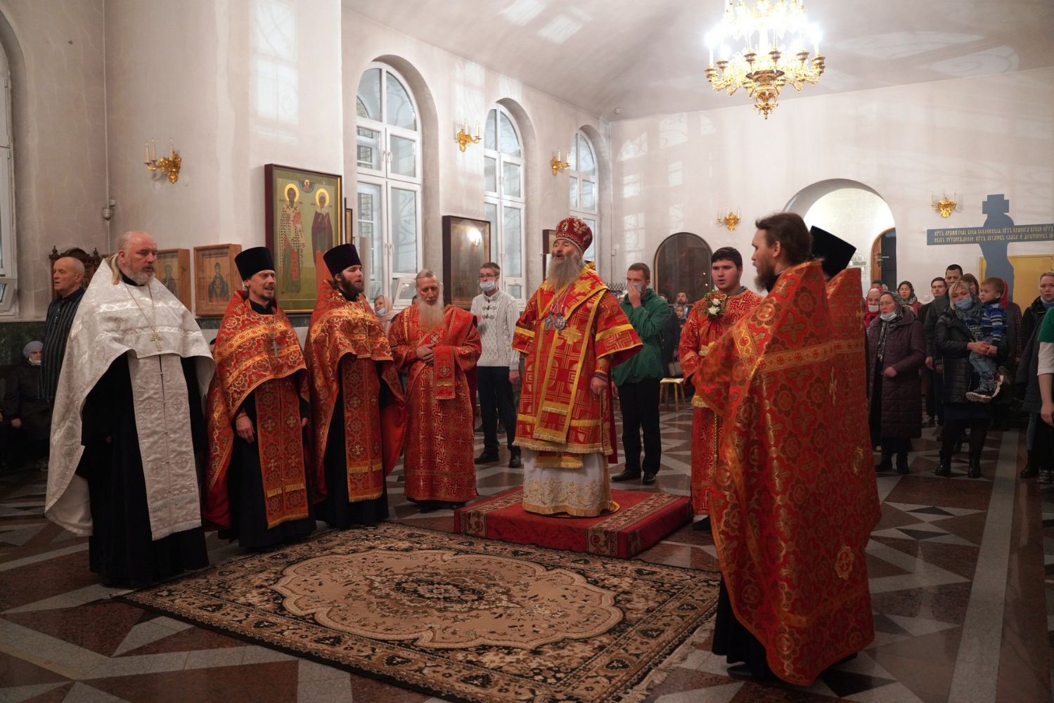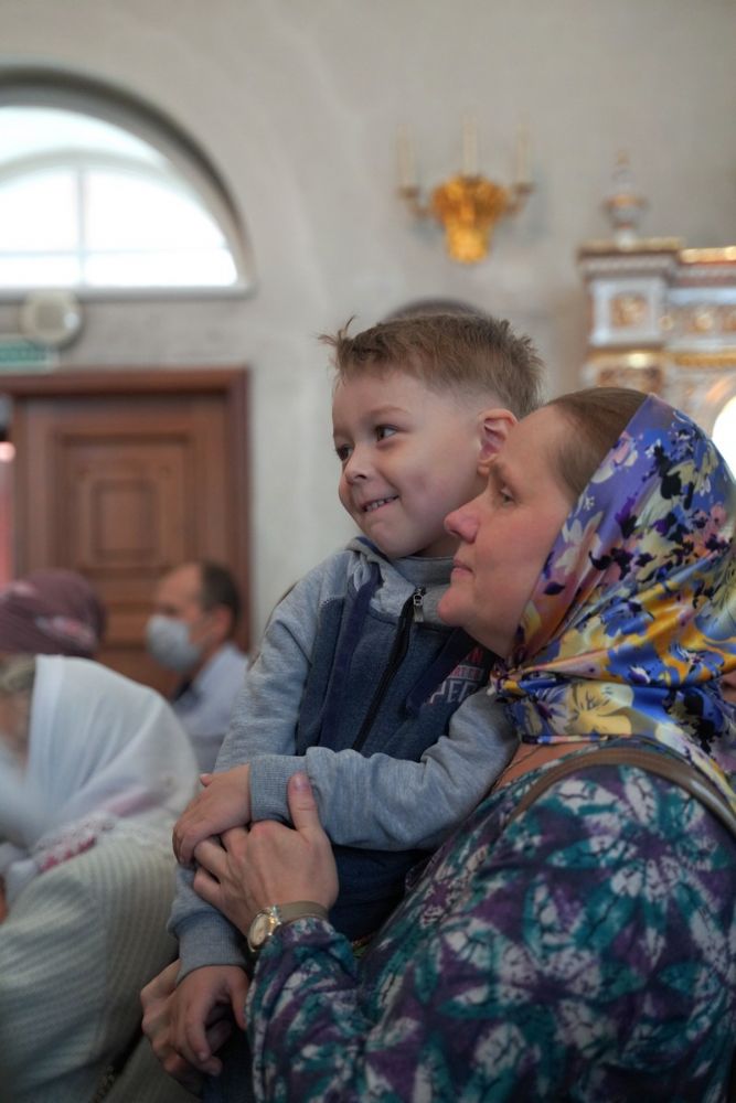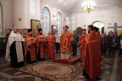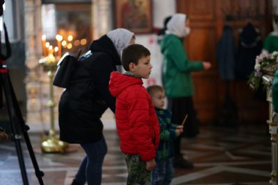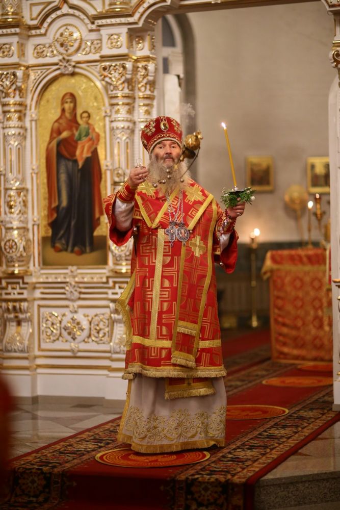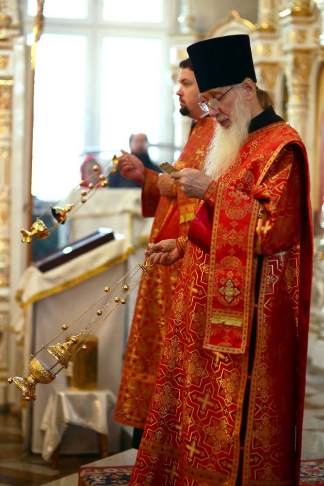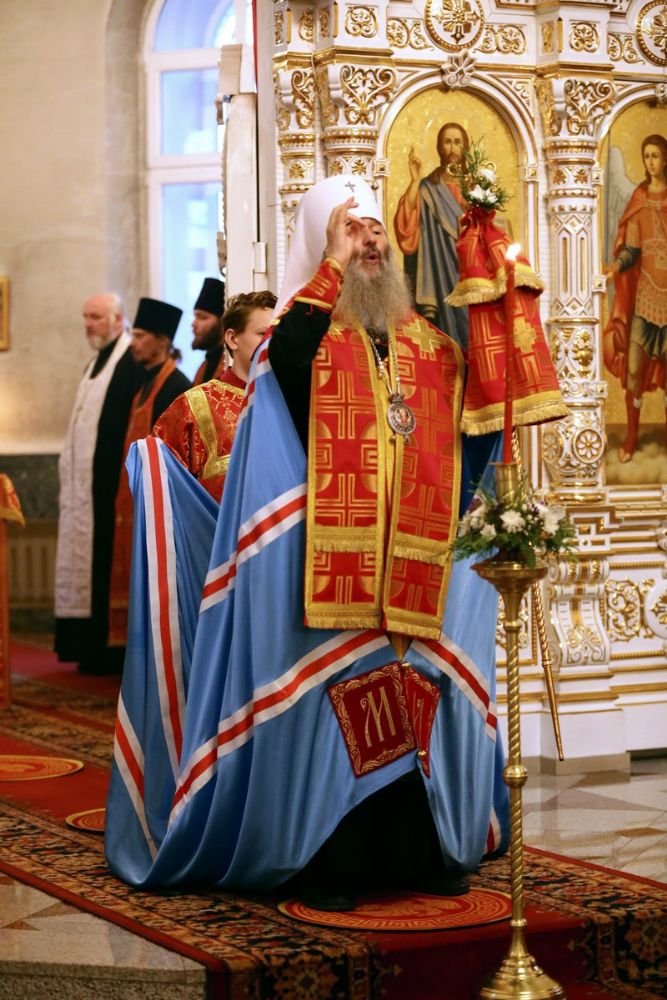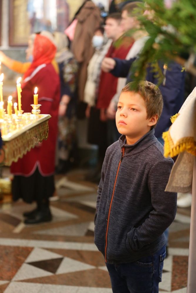 Архипастырю сослужили настоятель собора иерей Алексий Кирюшкин, клирики собора и протодиакон Михаил Козловский. Песнопения исполнял хор собора под управлением Алисы Вылегжаниной, за Литургией пел также детский хор под руководством регента Анастасии Полозовой.